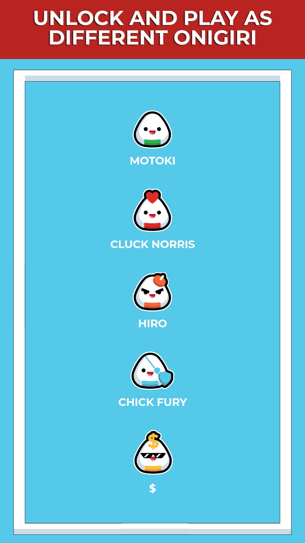 It's time to dodge the hungry jaws, avoid the crazy blinking eyes, run from Rage and collect coins to unlock all the cute onigiri.