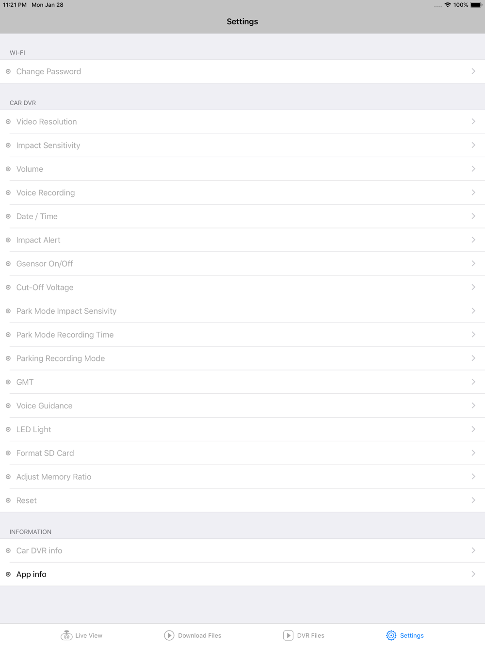 This app can play live video feed and recored files from Wi-Fi enabled Car CiEMS_Eye T5