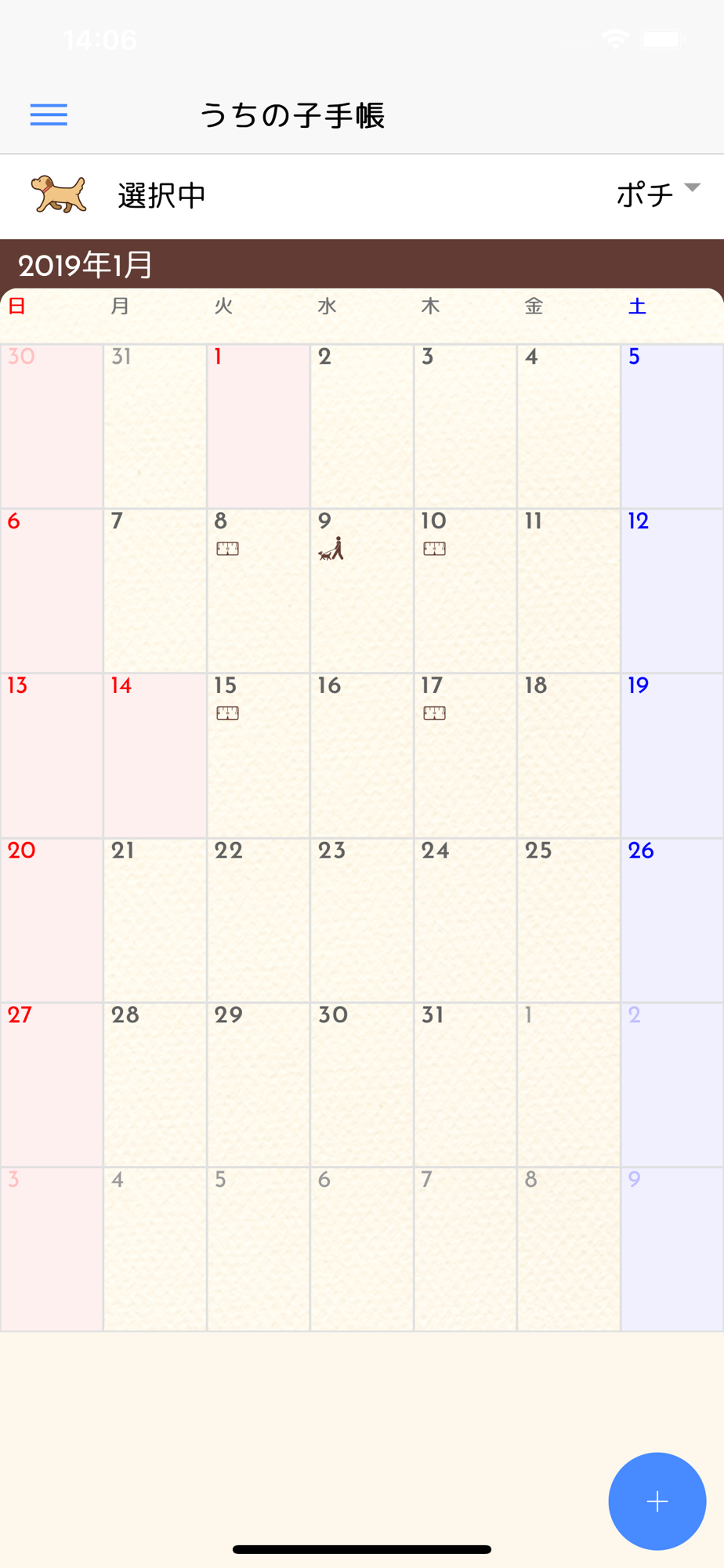 ‐毎日の食事や運動(散歩)等のお世話情報の記録可能