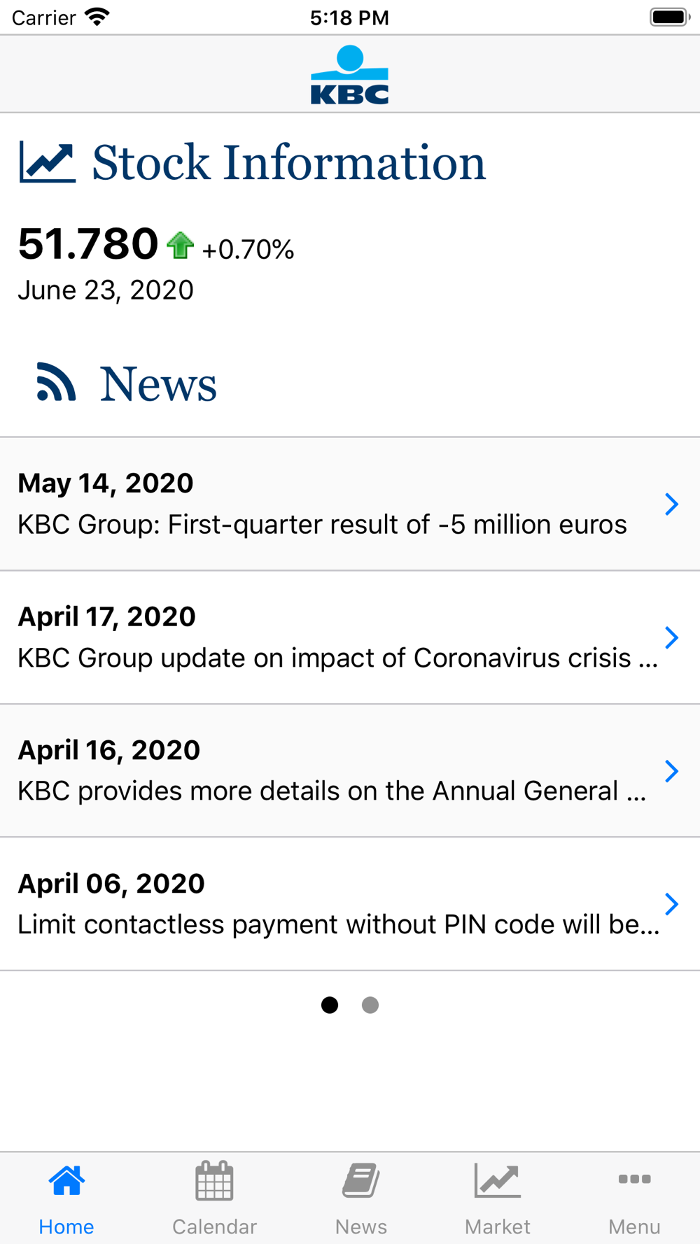 You can save events from KBC Group’s financial calendar to you phone and tablet and receive push notifications with financial news from KBC Group.