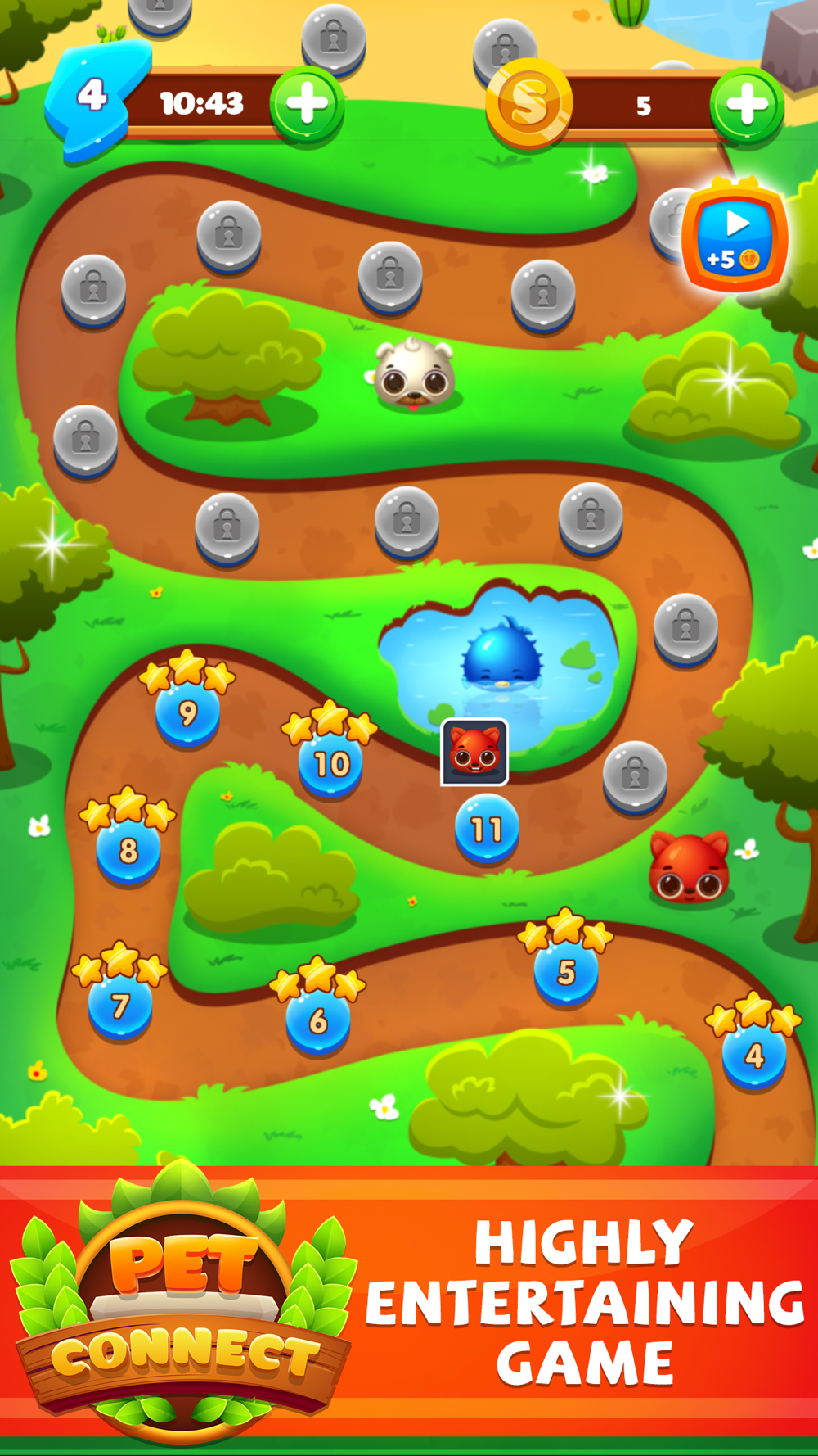Pet Link has more than 100 levels with increasing difficulty according to each level, conquer many challenges and name yourself in Pet Connect's honor leaderboard.