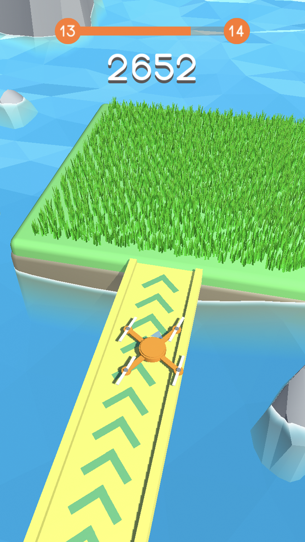 Control the drone to lawn the grass on the islands, don't fall into the water. Eat carrots to become bigger and pass as many levels as you can.