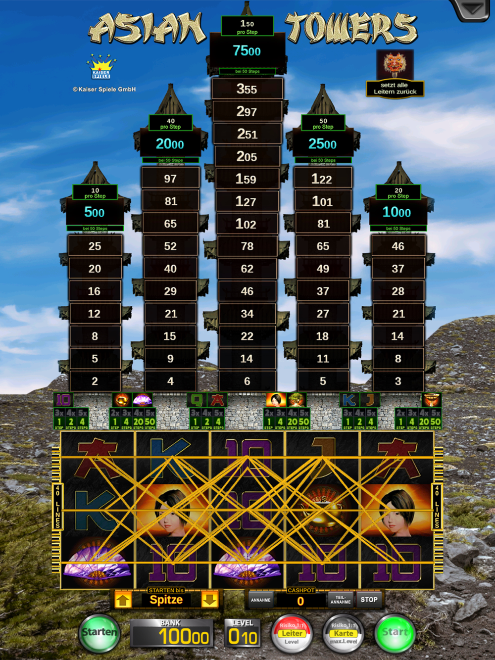 Mache Dich bereit für das Abenteuer „Asian Towers“ im schönen Asien! Erklimme die meterhohen Türme, welche von dem mächtigen roten Drachen beschützt werden, und besiege den Wächter Asiens!