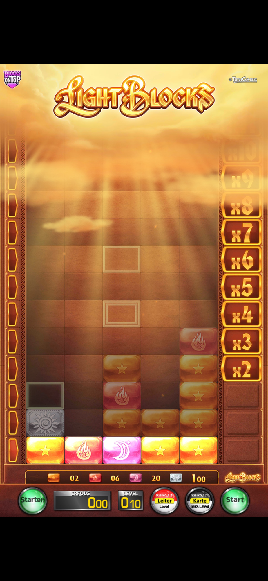 Der einzigartige Sound und Light Blocks! Lasst Euch vom Sammelfieber packen und füllt die Reihen mit den bunten Steinen. Wenn Du es schaffst eine Zeile vollständig zu füllen, erhältst Du fünf weitere Steine und die Zeile gibt die Erfolge der jeweiligen Steine. Alle Erfolge in einer Zeile werden mit dem Multiplikator der jeweiligen Zeile multipliziert.