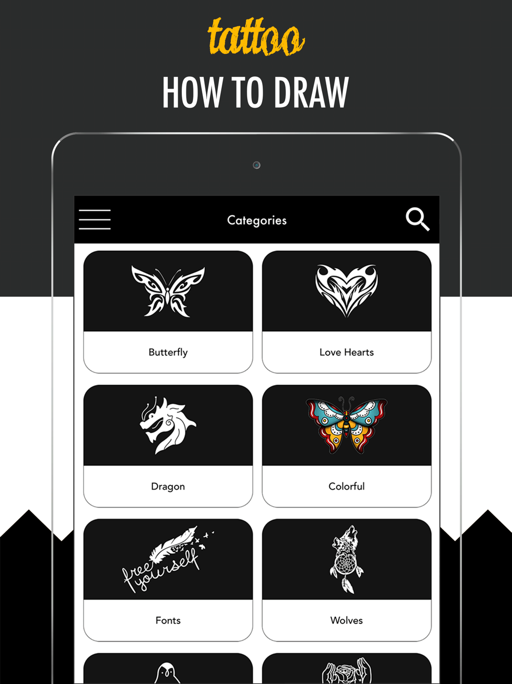 • You can browse over the categories: you can mark your preferred how to draw tattoo categories as favorites.