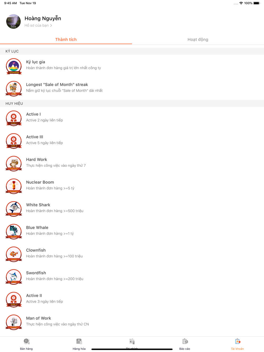 - Ngoài ra còn nhiều tính năng khác: Quản lý tồn kho, Báo cáo, Cơ hội, Thông báo, Quản lý tài khoản,...