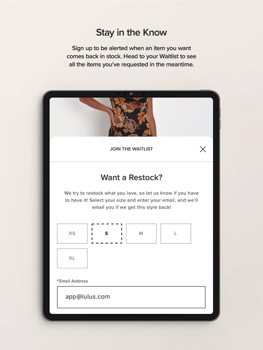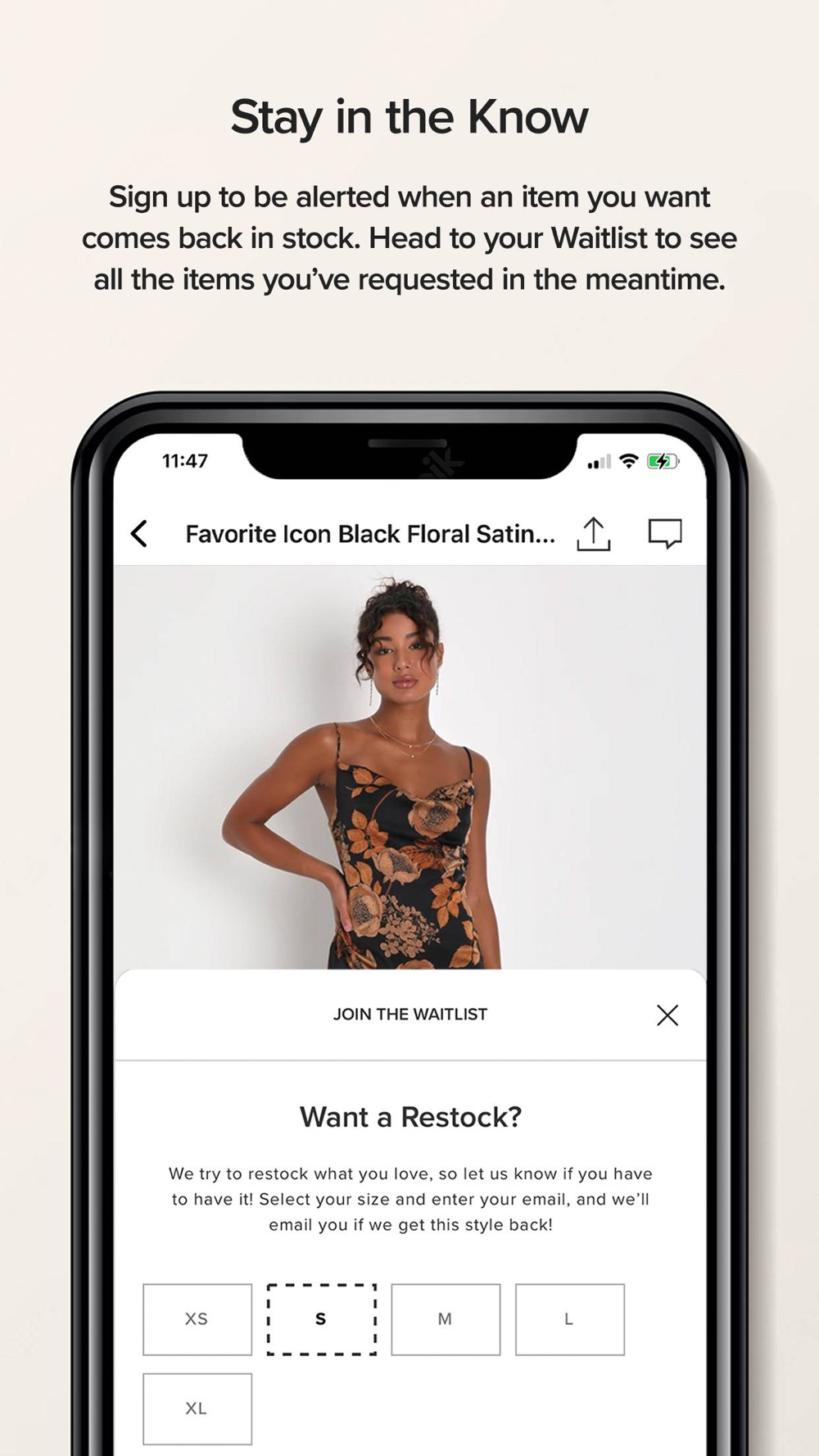 Hundreds of new arrivals are added each week and styles sell out fast, making the Lulus app the place to be to find exactly what you want and need. Search for the perfect item and save your favorites to curate your dream wardrobe from our consistently updated collection. See new styles before anyone else with app-exclusive product launches and instant access to the latest arrivals.