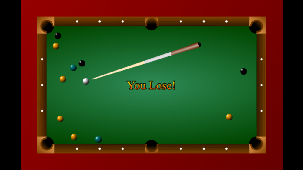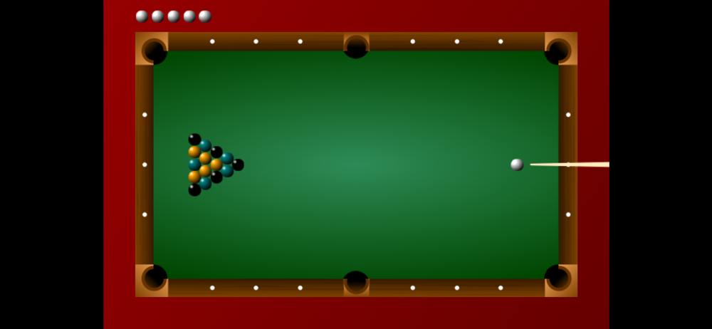 Controls: Once the cue appears, tap and hold or click and hold in the direction you would like to hit the ball. The longer you press, the harder the cue will strike. The cue will only appear on the screen when all of the balls have stopped moving.