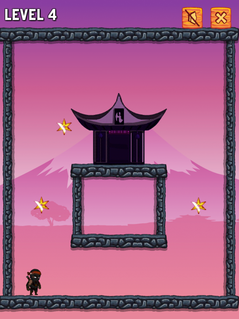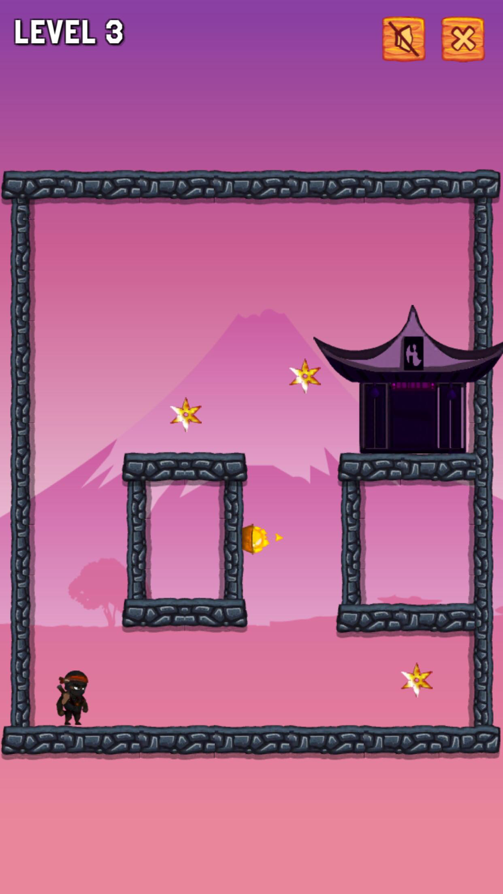 Run and jump from wall to wall to avoid the obstacles, get the shrunken & reach the gate. There a very simple mechanics to follow, but the game itself isn't simple. You must use the strategy that the ninja possess in order to successfully navigate the levels and pass them with all 3 shuriken.