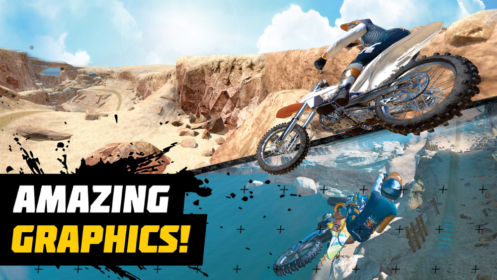 The lines get blurred between mobile and console graphics for two-wheel racing games. Feel the dirt fly and enjoy epic sunsets & vast landscapes as in real life.