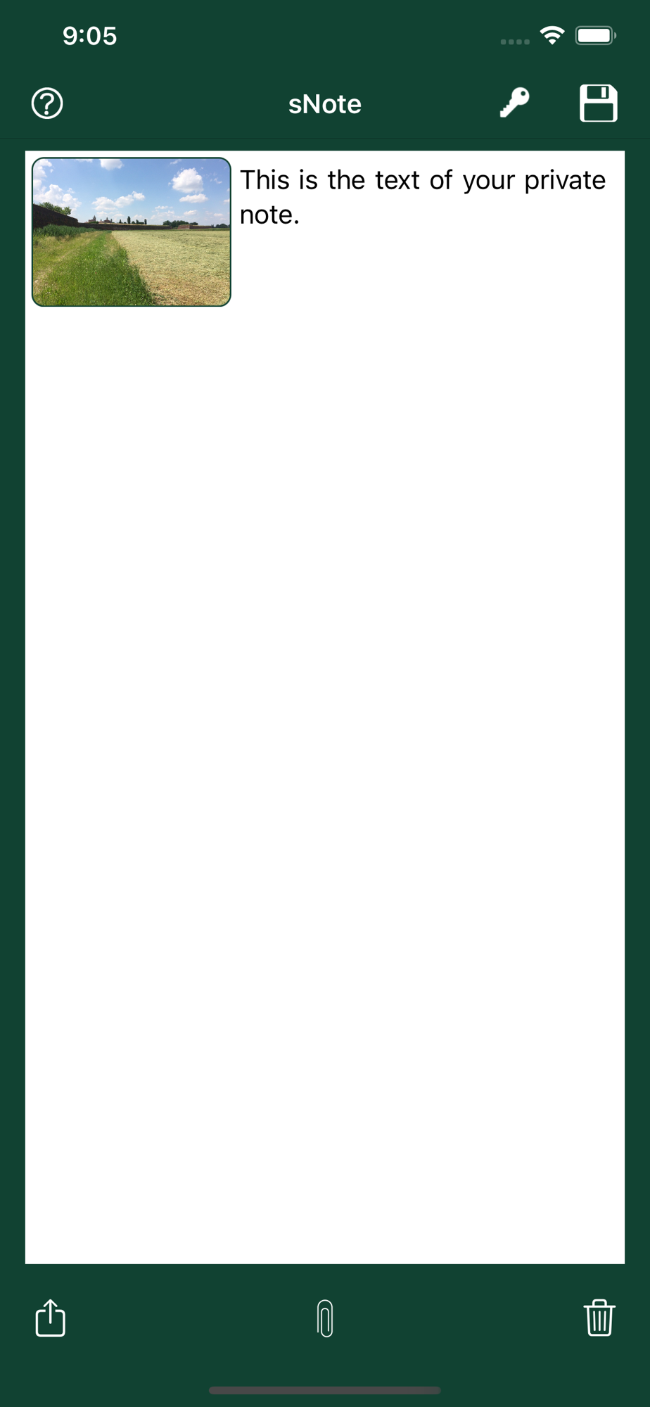 s-Note allows encrypting note into an image leveraging on a mix of steganography and cryptography techniques. The encryption process requires the user to select its own password. Images that contain notes must not be modified: not resized or filtered in order to preserve the integrity of the note itself.