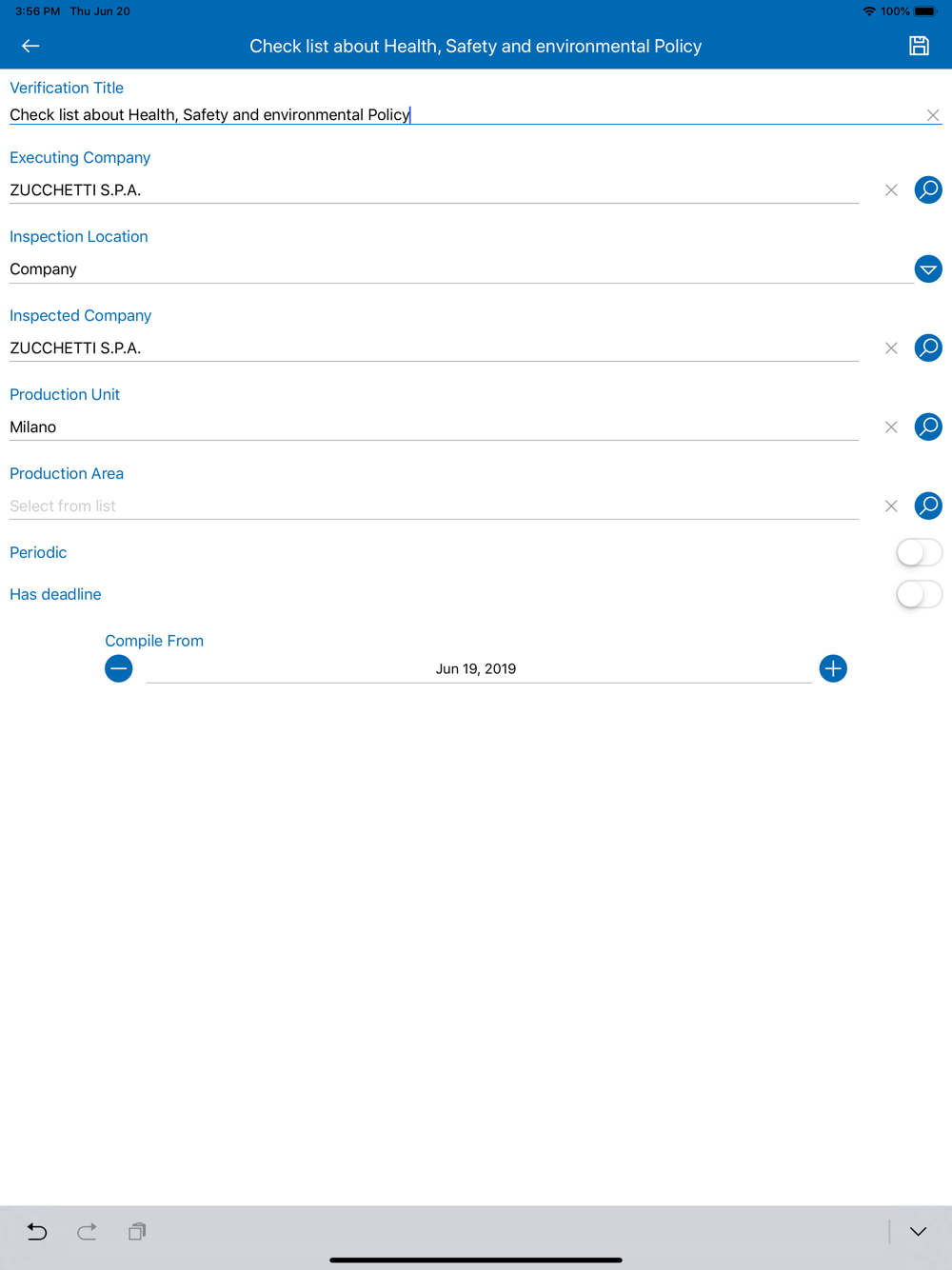 ZAudit, integrated with the Zucchetti S.p.A. Audit Management solution, simplifies the distribution processes of check list, planning and control models for periodic checks, report management and non-compliances found.