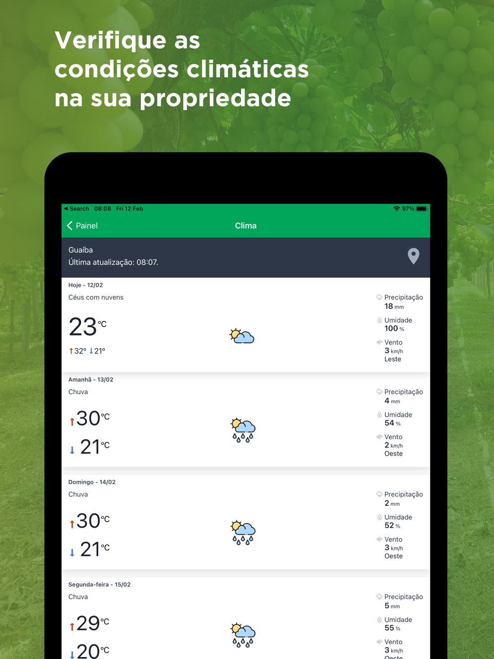 - Controle os manejos, aplicações, colheitas e registro de estimativas;