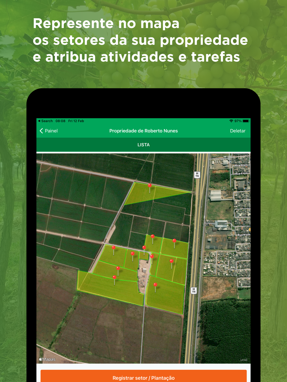- Importe seus arquivos de mapa KML direto para o sistema e registre suas safras com mais facilidade;