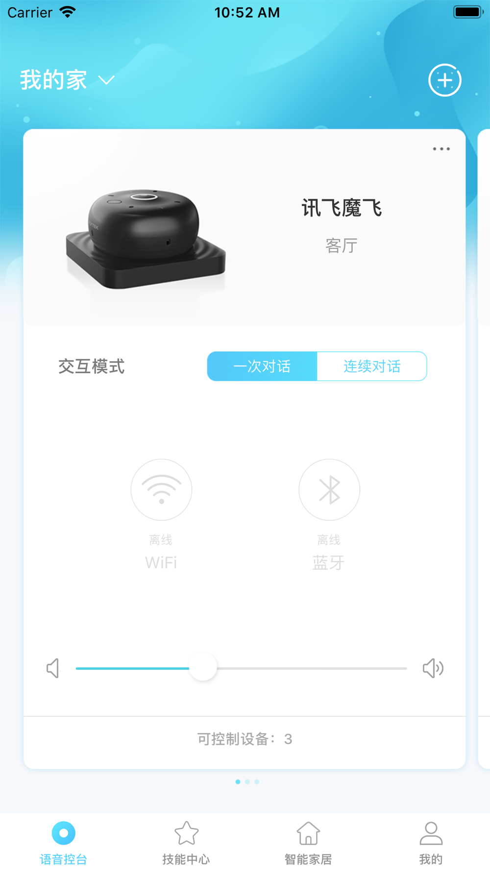 魔飞AI家是为终端消费者打造的智能硬件设备管理和服务平台。提供基本的设备操控能力,可实现设备的互联互通。目前魔飞AI家可以提供设备管理、状态控制、设备联动等功能。目前APP主要由四个模块组成,分别为语音控台、技能中心、智能家居和我的。语音控台主要是实现对MORFEI系列产品的控制,包括配网、交互模式设置、名称和位置设置等,是APP最核心的模块。技能中心模块主要展示了MORFEI所具备的技能,用户可根据提示,了解有效的语音交互指令。智能家居模块主要实现了对第三方智能设备得控制和管理,目前可通过授权的方式获取到第三方厂商设备。我的模块支持帐户相关信息的设置,并未用户提供了问题反馈路径。四个模块的协作配合,可以有效帮助用户高效实现对MORFEI和第三方智能设备的管理,提升智能家居控制的整体体验。