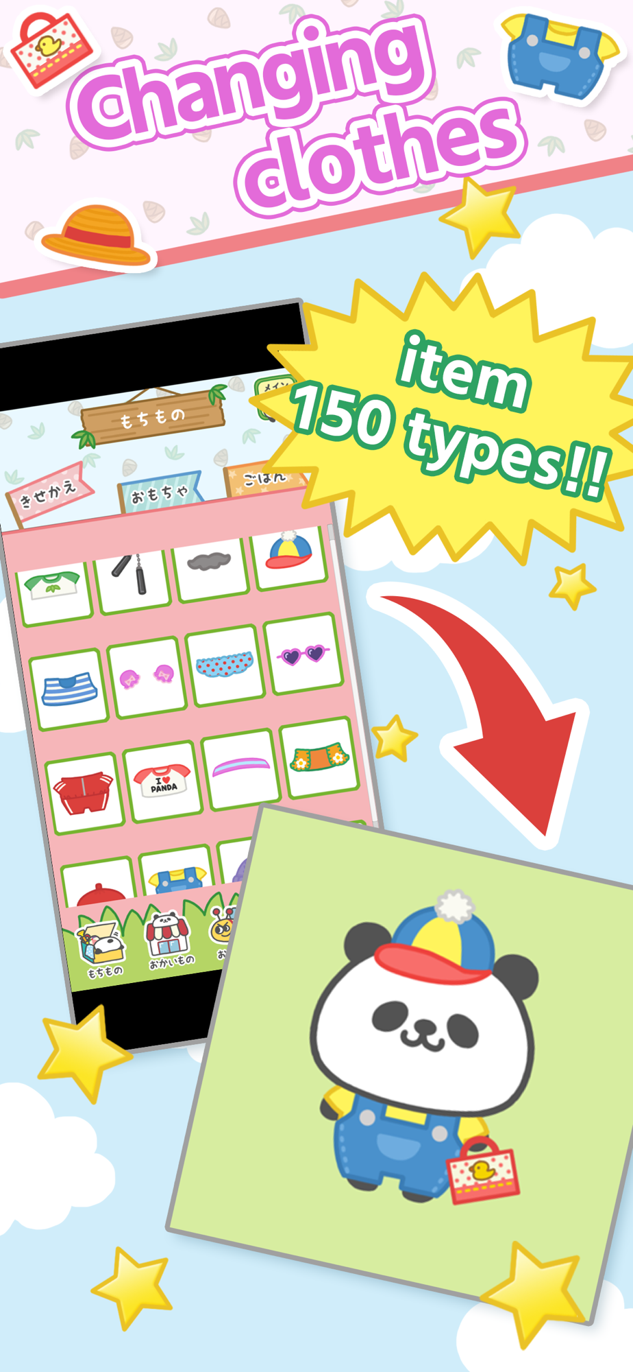 Let's show various kinds of pandas by using each item such as clothes, toys and food!