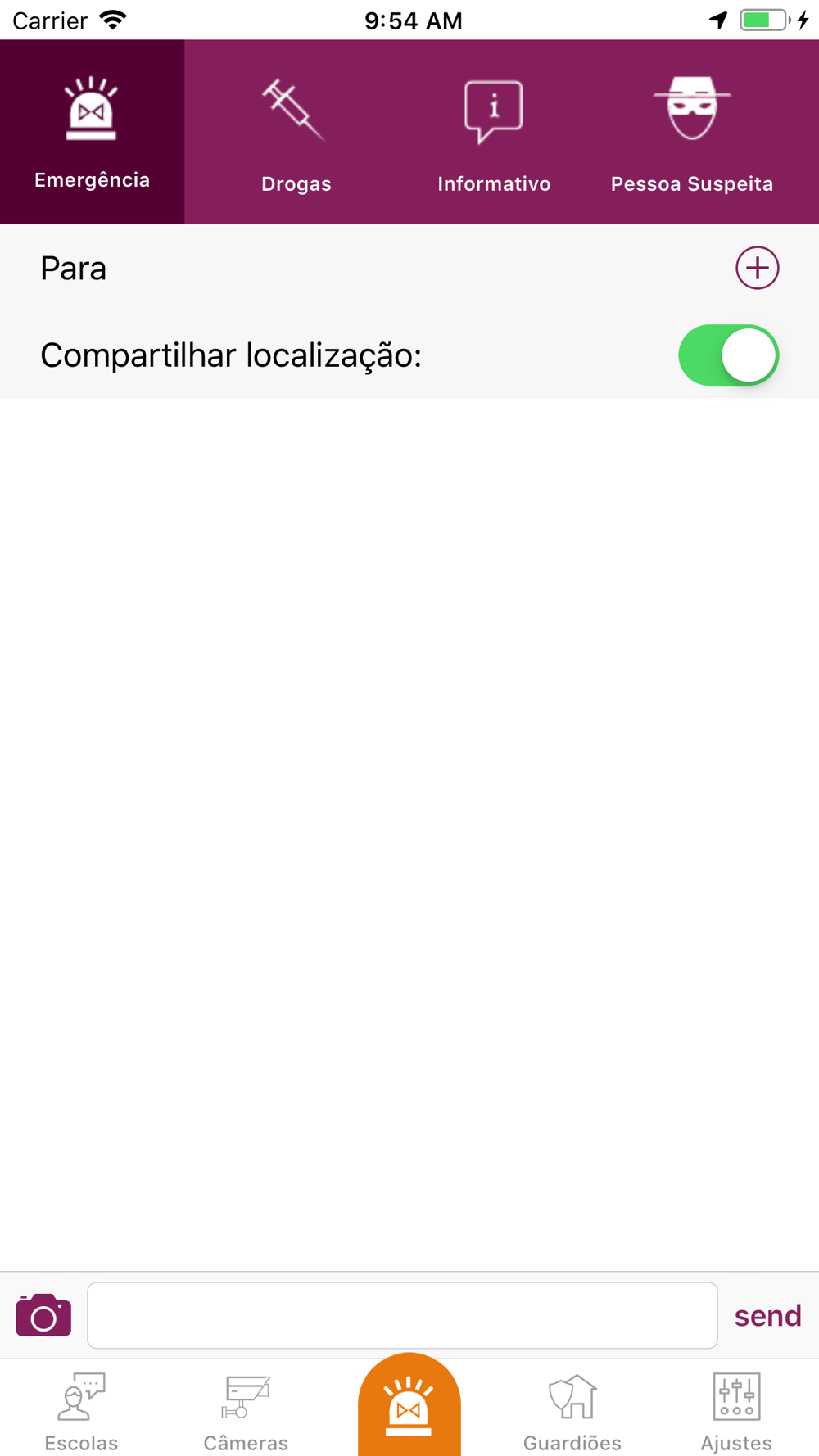 - Os participantes enviam alertas entre si de qualquer ameaça, atitude suspeita ou emergência que aconteça na escola ou que for visto em uma das câmeras compartilhadas com a Guarda Municipal, Diretoria da Escola e Pais que também recebe os alertas.
