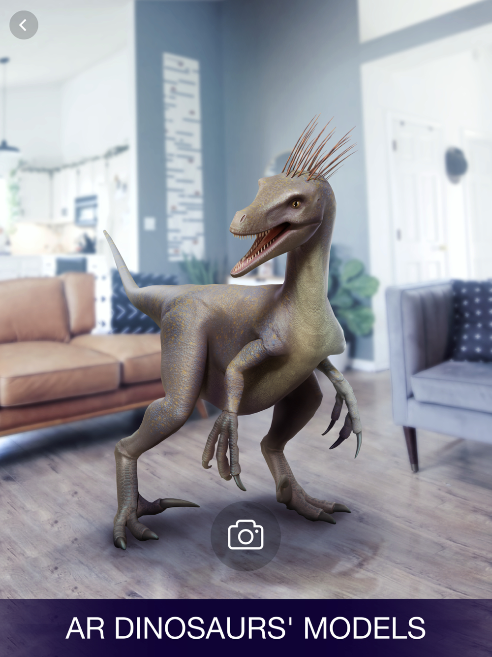 - realistic creatures in 3D/AR: T-Rex, Velociraptor, Diplodocus, Triceratops, Gastonia and more;