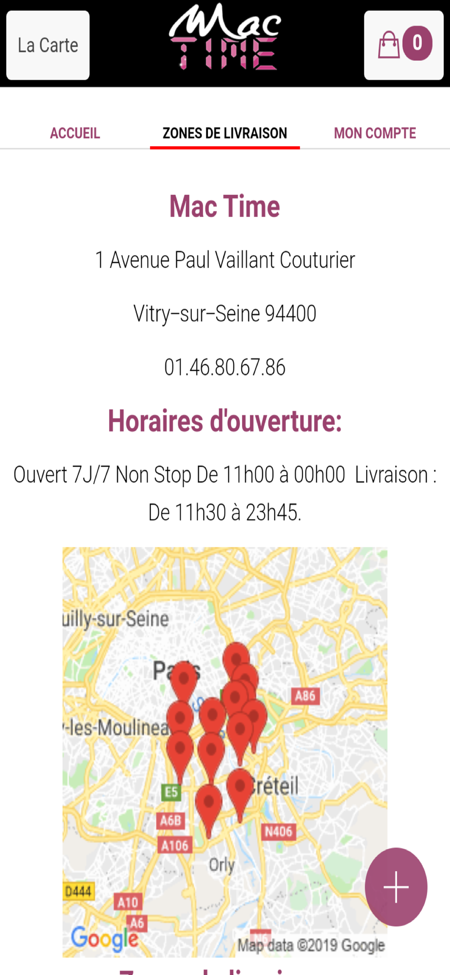 L'application Iphone/Ipad de Mac Time vous permet de commander en ligne ou par téléphone via votre application . Vous pouvez consulter notre carte et choisir vos produits.