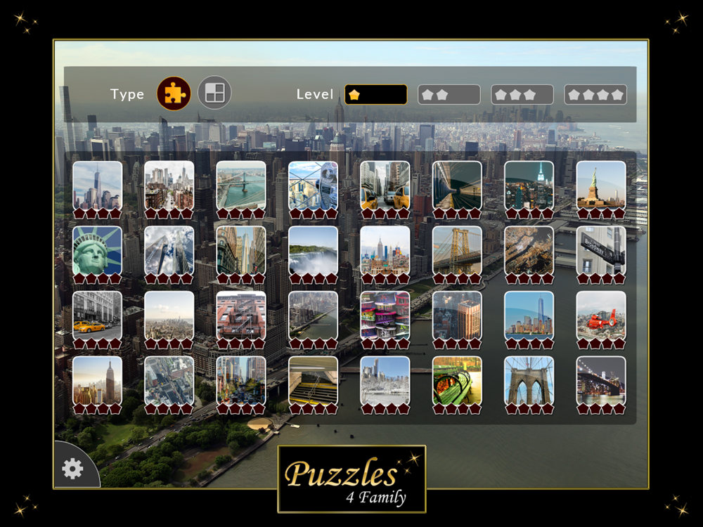 それは2種類のパズルと4つの難易度のレベルを含みます:ジグソーパズルとスライディングパズル。