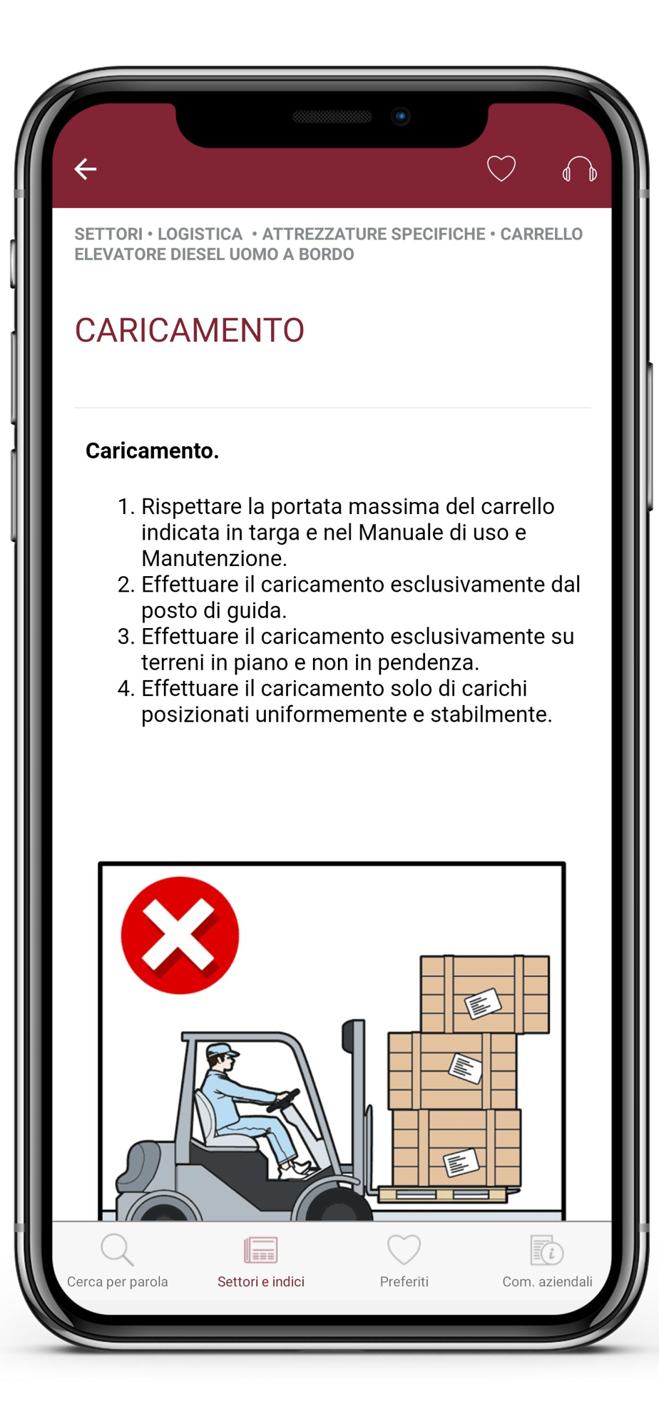 AudioSafety® contiene Istruzioni di lavoro in sicurezza che si possono leggere o ascoltare e che sono corredate da illustrazioni tecniche esplicative, video tutorial, fruizione ipertestuale e link di approfondimento.