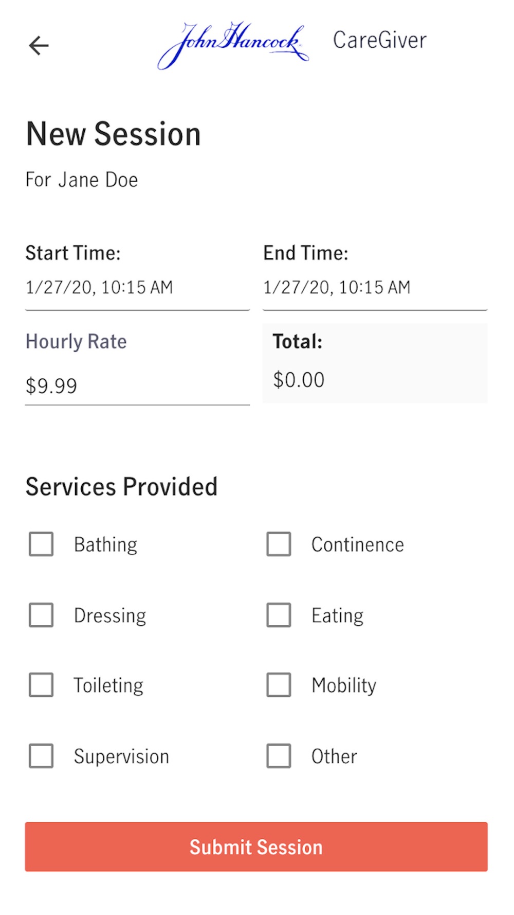 The John Hancock CareGiver App provides approved independent caregivers a fast, convenient and paperless way to submit care sessions for services provided to John Hancock Long-term care insureds with active claims.