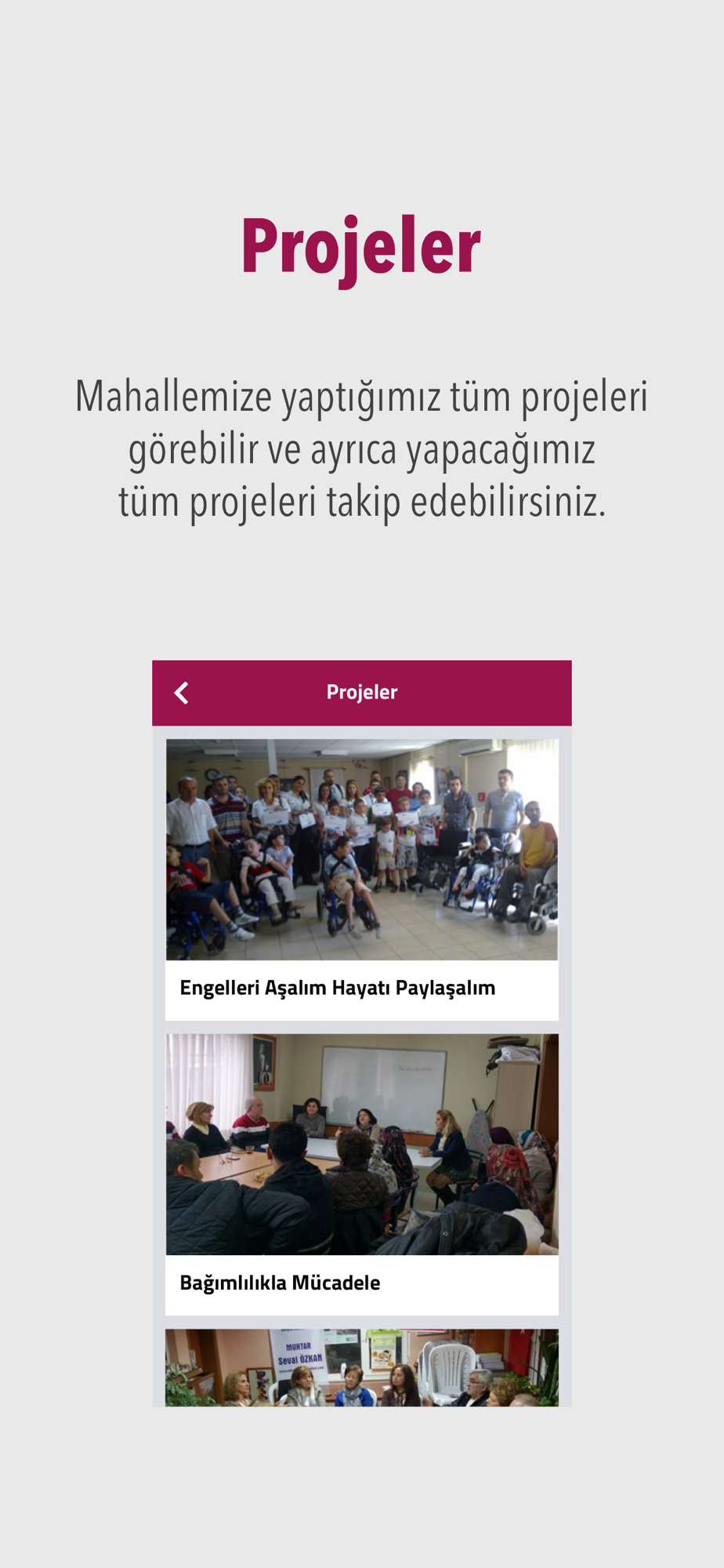 Mahallemiz ile ilgili etkinlikleri, anketleri tek bir uygulamadan takip edebilirsiniz.