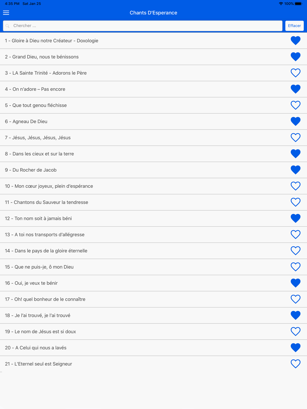 Chants D'Esperance avec mélodies vous permet d'accéder à toutes les paroles du livre de chanson chants d'esperance. Certain airs sont également inclus avec les paroles afin que vous puissiez apprendre et aider à votre adoration.