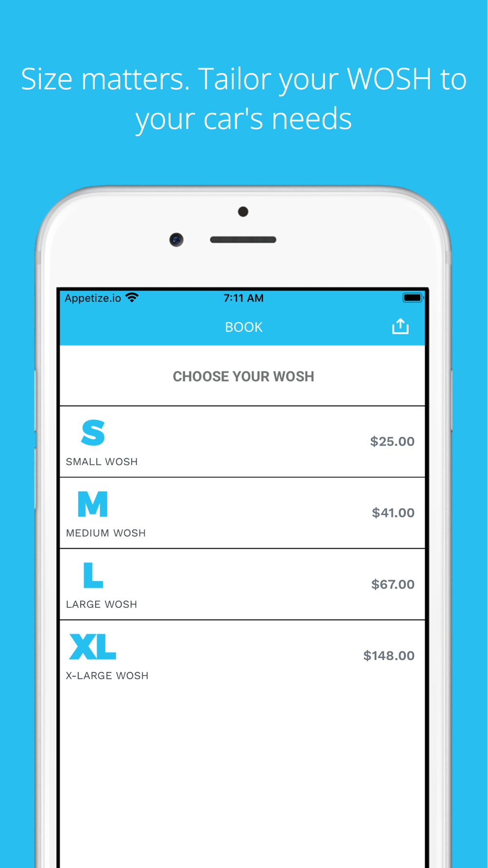 WOSH is an app that provides car wash services tailored to your car’s needs. Our easy to use user interface will allow you to choose from various levels of services, as well as some other features like customer support, order history, and more.