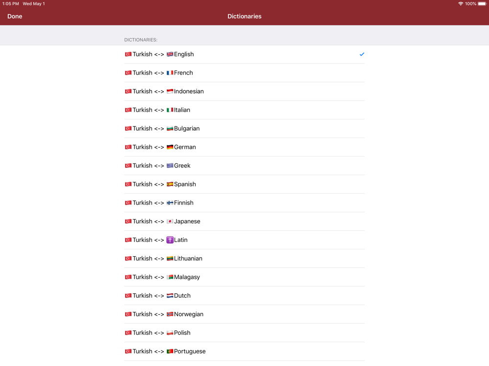Easily translate between Turkish and 20 other languages with offline and online dictionaries. See translations instantly while typing. Listen to pronunciation. Quickly check images associated with the word or its translations.