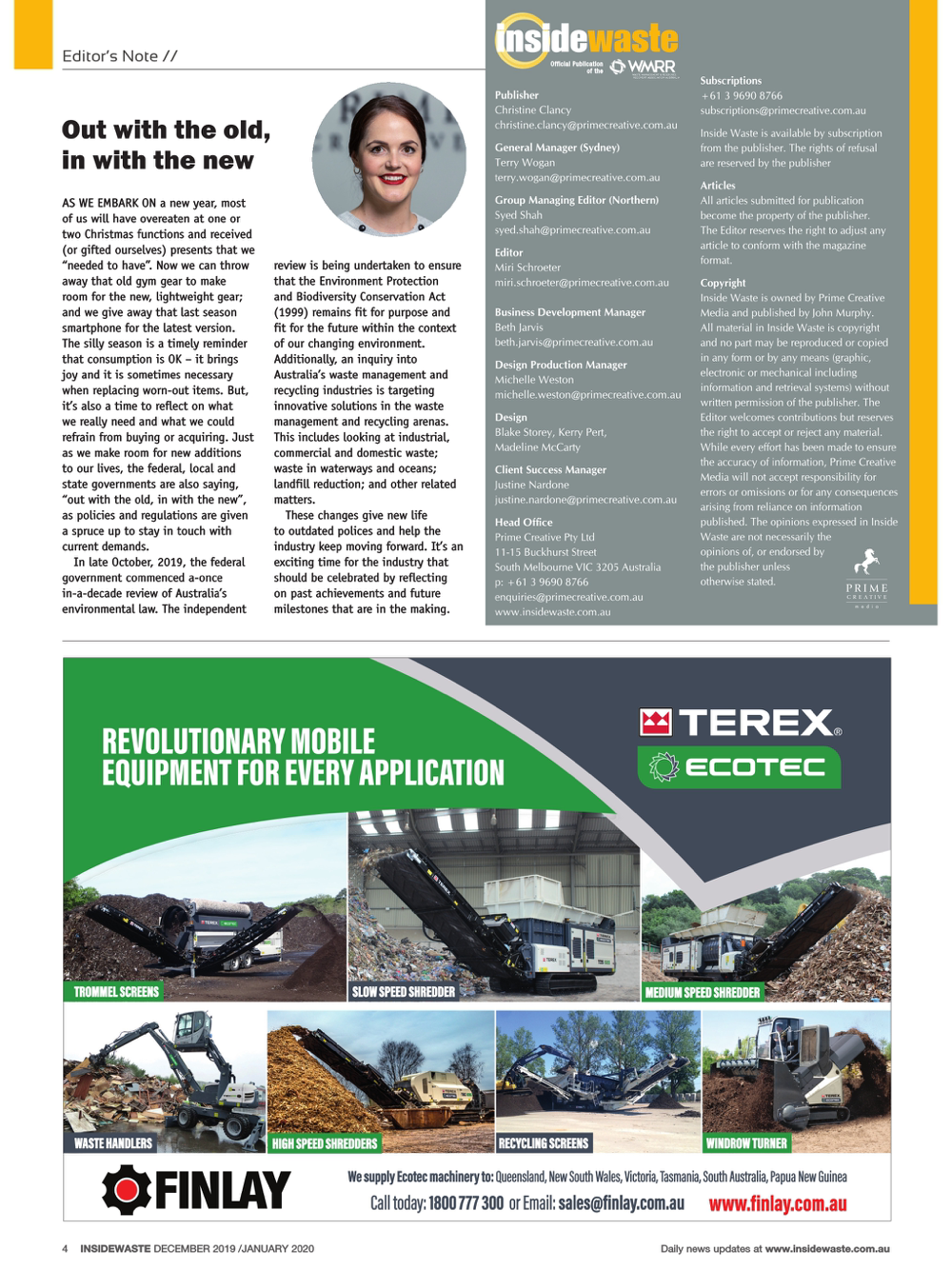 Inside Waste is the industry’s essential resource for keeping up with all the news, moves, projects, trends and developments in the Australian waste sector. Inside Waste has the industry covered with editorial content that matters.