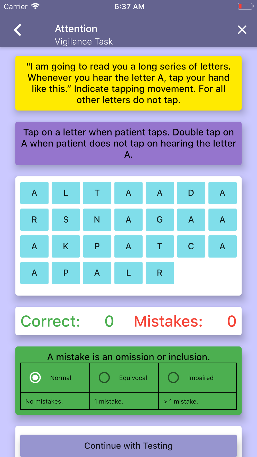 An educational booklet and videos are provided to educate and explain the tasks. The user of this App is strongly advised to go through this before using the App.