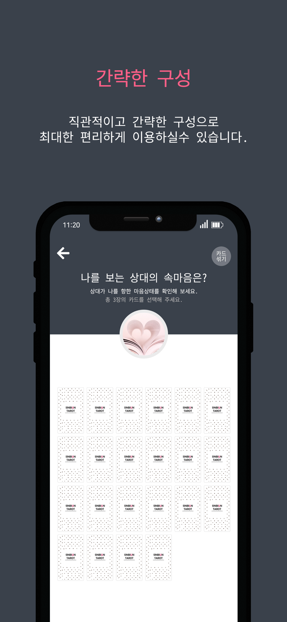 마음이 답답하고 뭐하나 제대로 잘되는 것은 없는 것 같고, 때때로 궁금한 것들은 생기고... 신비운이라는 이름은 들어보셔서 아시고 계시리라 믿습니다. 저희 신비운 또한 그에 걸맞는 명실상부 국내 최고의 운세 컨텐츠 전문회사임을 자부하고 있습니다. 온라인으로 개인별 맞춤운세를 제공하고 있으며 십수 년간 수없이 많은 제휴업체를 통해 검증된 운세 및 타로컨텐츠를 보유하고 있으며, 이번에 그 중 타로 컨텐츠만을 모아 이렇게 신비운타로 무료앱을 출시하게 되었습니다. 신비운타로는 복잡한 기능을 전부 빼내고 가장 간단하고 심플하며 직관적으로 이용하실 수 있도록 구성을 하였으며 상하 스크롤을 통해 컨텐츠를 선택하신 후 타로카드를 선택하시는 방식으로 이용이 가능합니다. 회원가입을 꺼려하시는 분들을 고려하여 가입없이 이용하실 수 있도록 구성하였으며 철저하게 이용자의 편에서 생각하고 고민한 이용자 중심의 앱입니다.