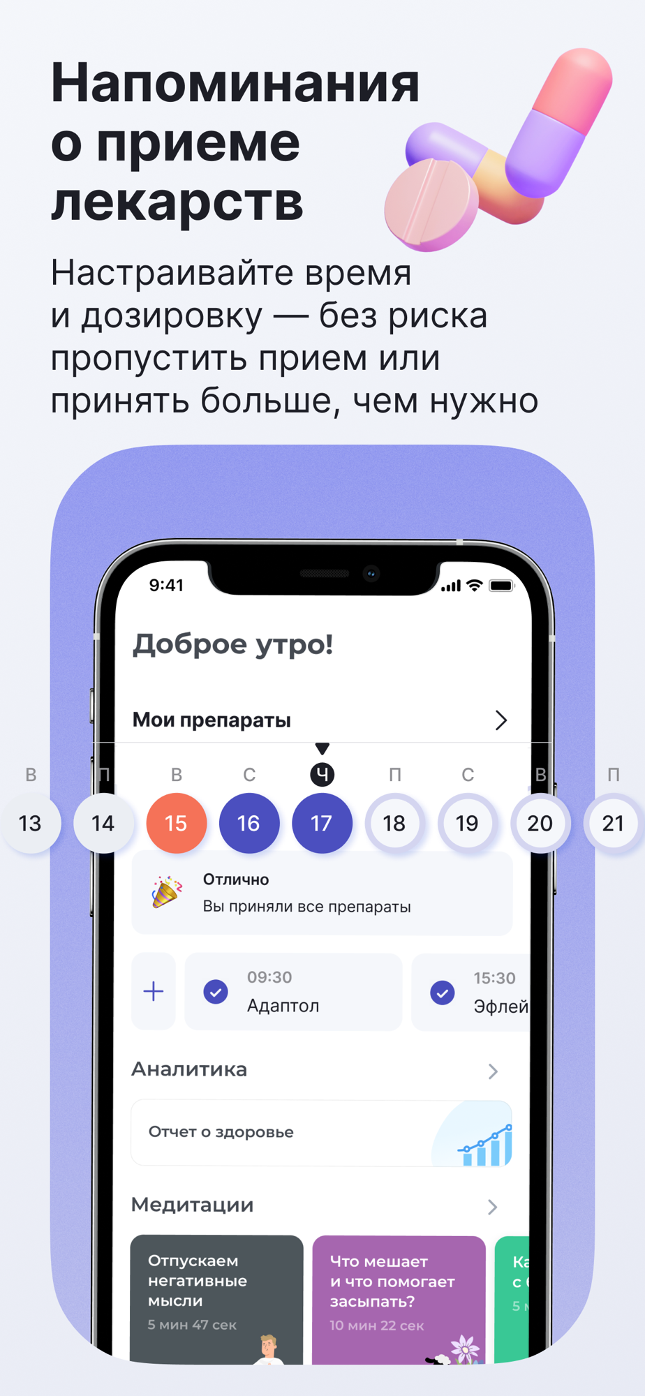 • Свобода от тревоги — бесплатная программа поддержки ментального здоровья. Вам доступны медитации, упражнения, поддержка психотерапевта и умные дневники;