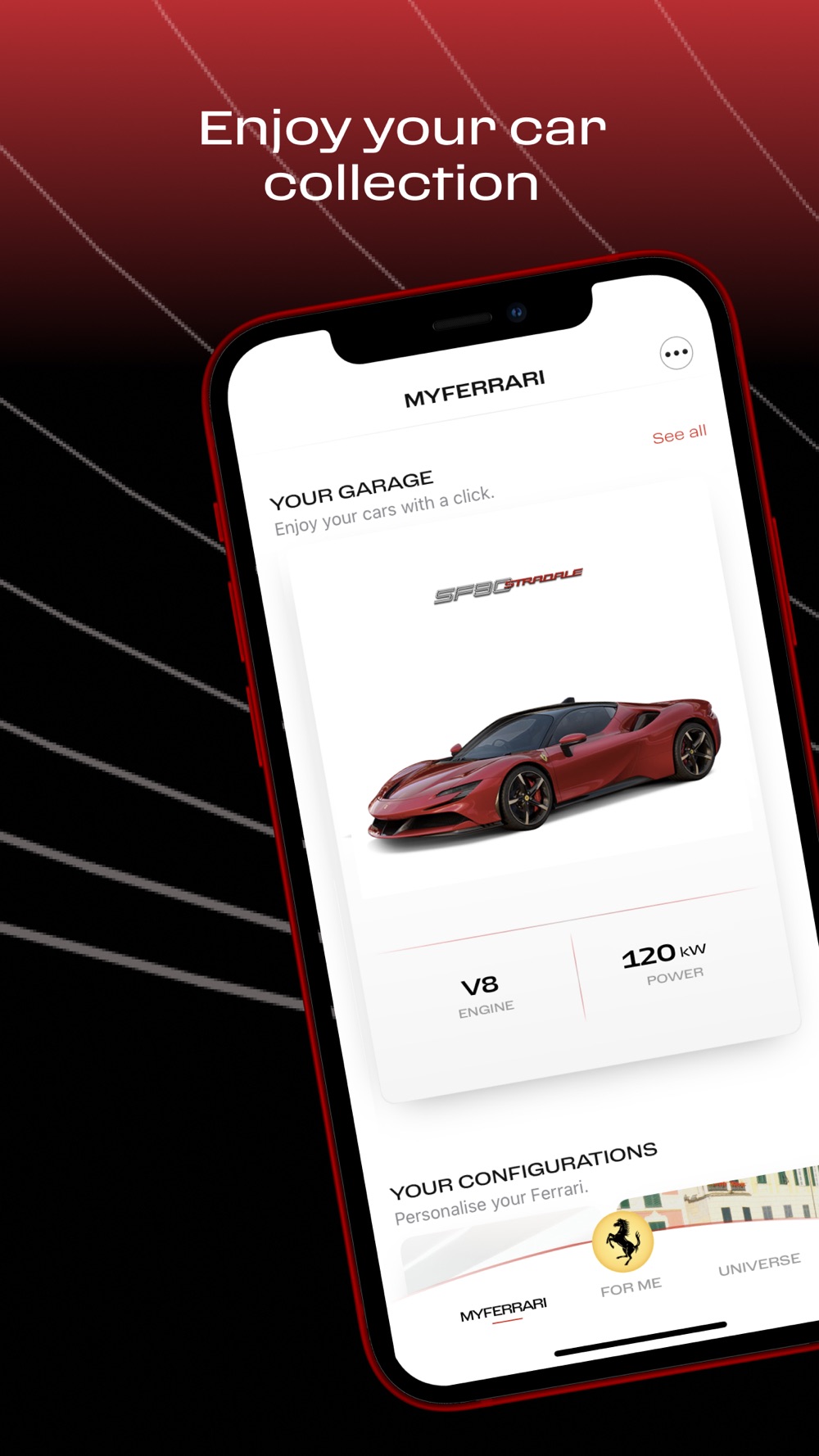 MyFerrari is the exclusive application designed for Clienti Ferrari: the key to staying connected with the legendary Prancing Horse universe, where you can browse exclusive content and access personalised services in a simple, intuitive way.