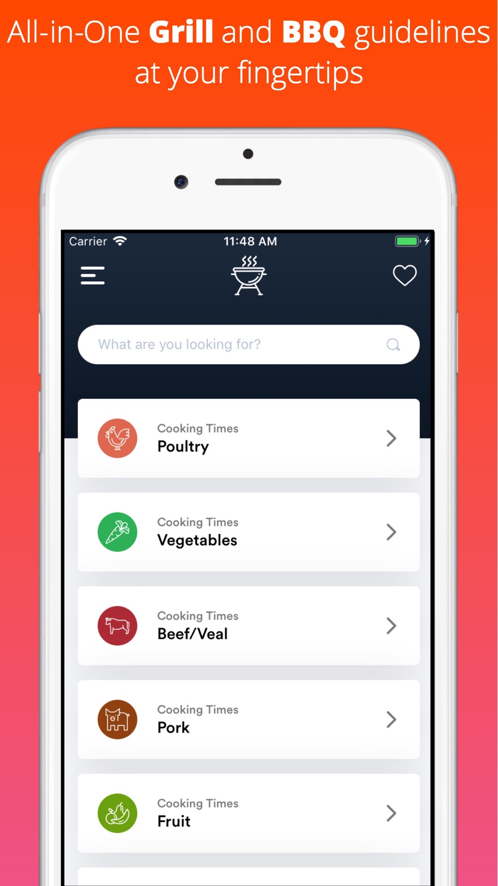 BBQ Handbook is an all-in-one grill and BBQ helper app that gives you the guidelines for cooking times, internal temperatures for various cuts of meat, direct or indirect cooking and much more.