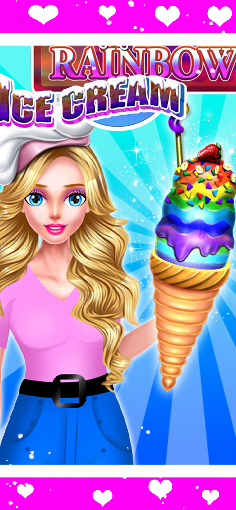 First of all you should buy all the neccessary ingredients from the supermarket so go there and find them all. Next it's the cooking session where you should mix the ingredients as the recipe says to get the perfect rainbow icecream. Complete all the challenges of this step and prove that you are a good chef. Finally you can decorate the rainbow icecream as you want. Choose the cone, the syrup and add some fruit decoration on the top to make the icecream look tasty. Now the icecream is ready to be serve and you can be proud about jour job. Have fun playing this new cooking icecream game and enjoy it!