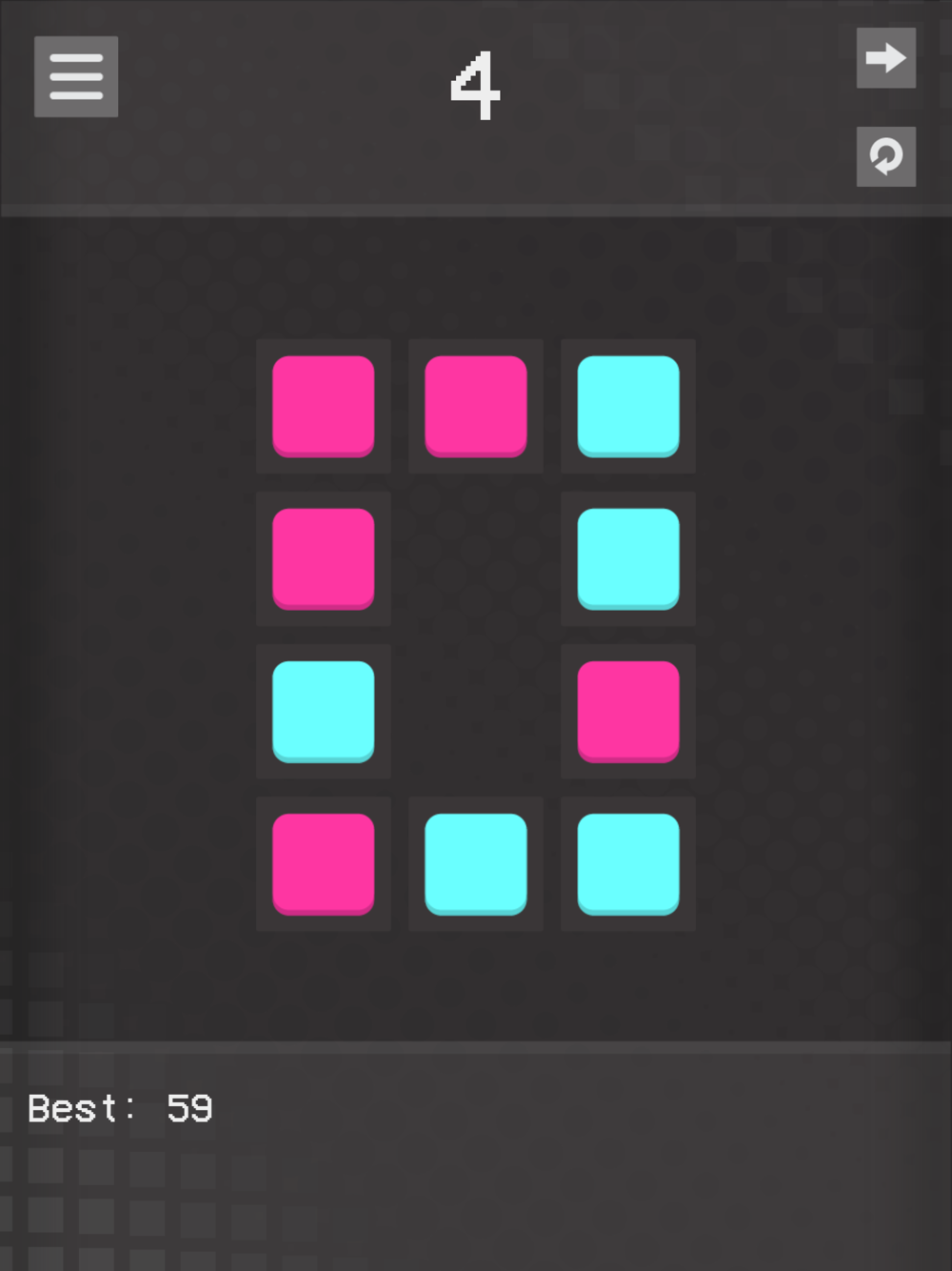 • Tap the tiles to change colors – flip all of the tiles to blue in order to win!