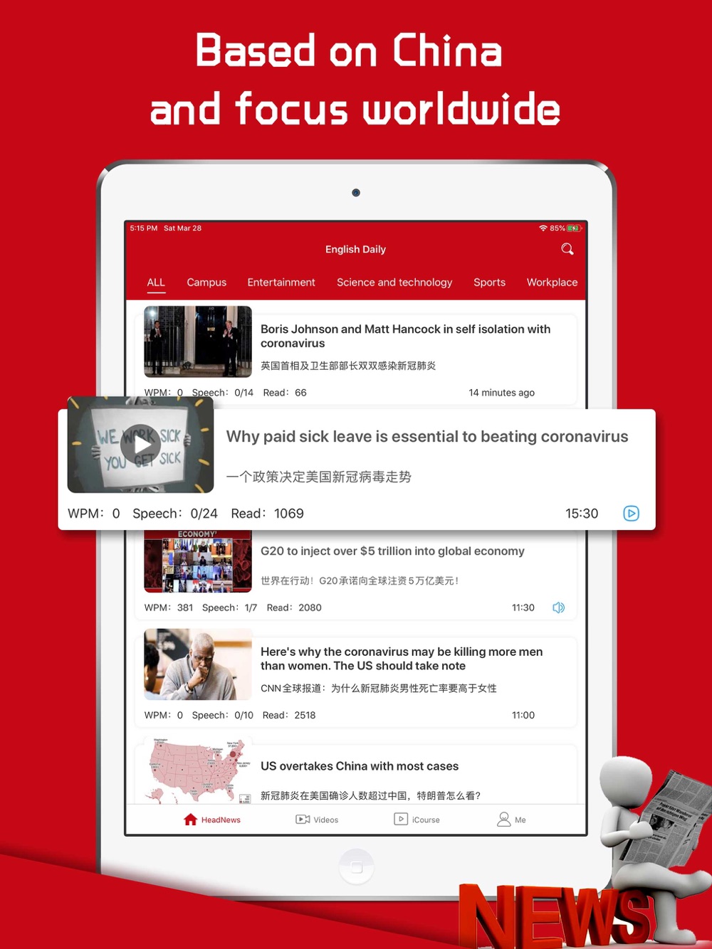 5. Regularly update the English top news video of the world.