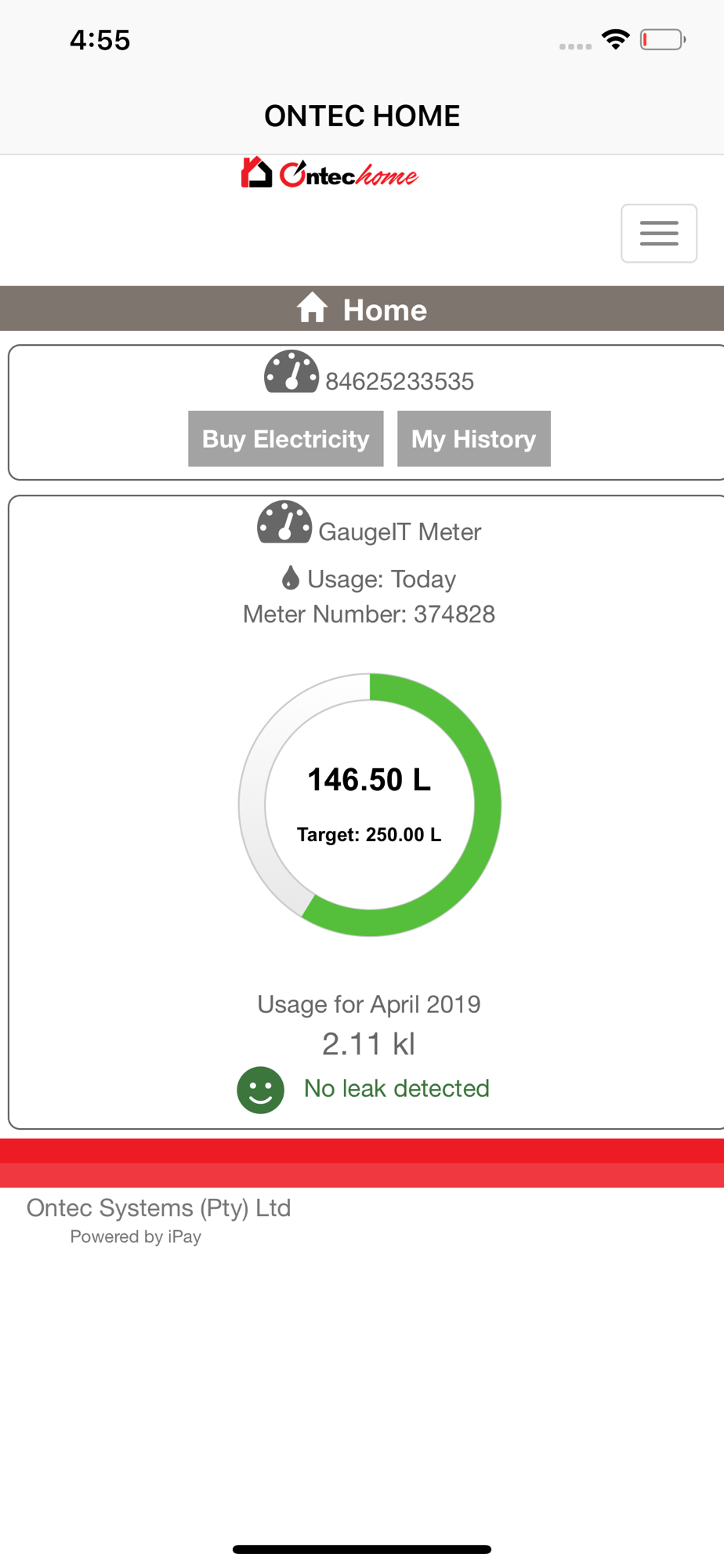 Ontec HOME is a smart monitoring application that allows users to monitor their household water consumption through the GaugeIT solution as well as purchase prepaid electricity. Through Ontec Home users can monitor more than one household and can provide a friendly alias for the various houses being monitored.