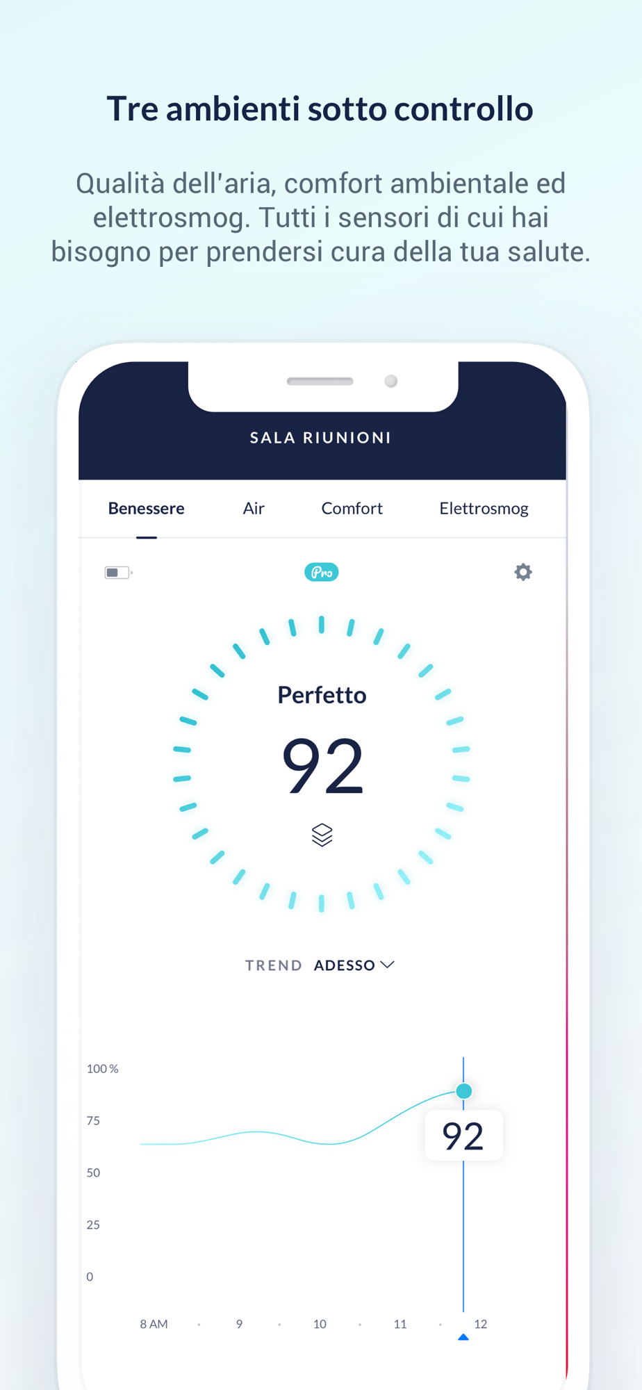 L’APP e Aircare ti consentono di misurare la qualità dell’aria, il comfort ambientale e l’inquinamento elettromagnetico.