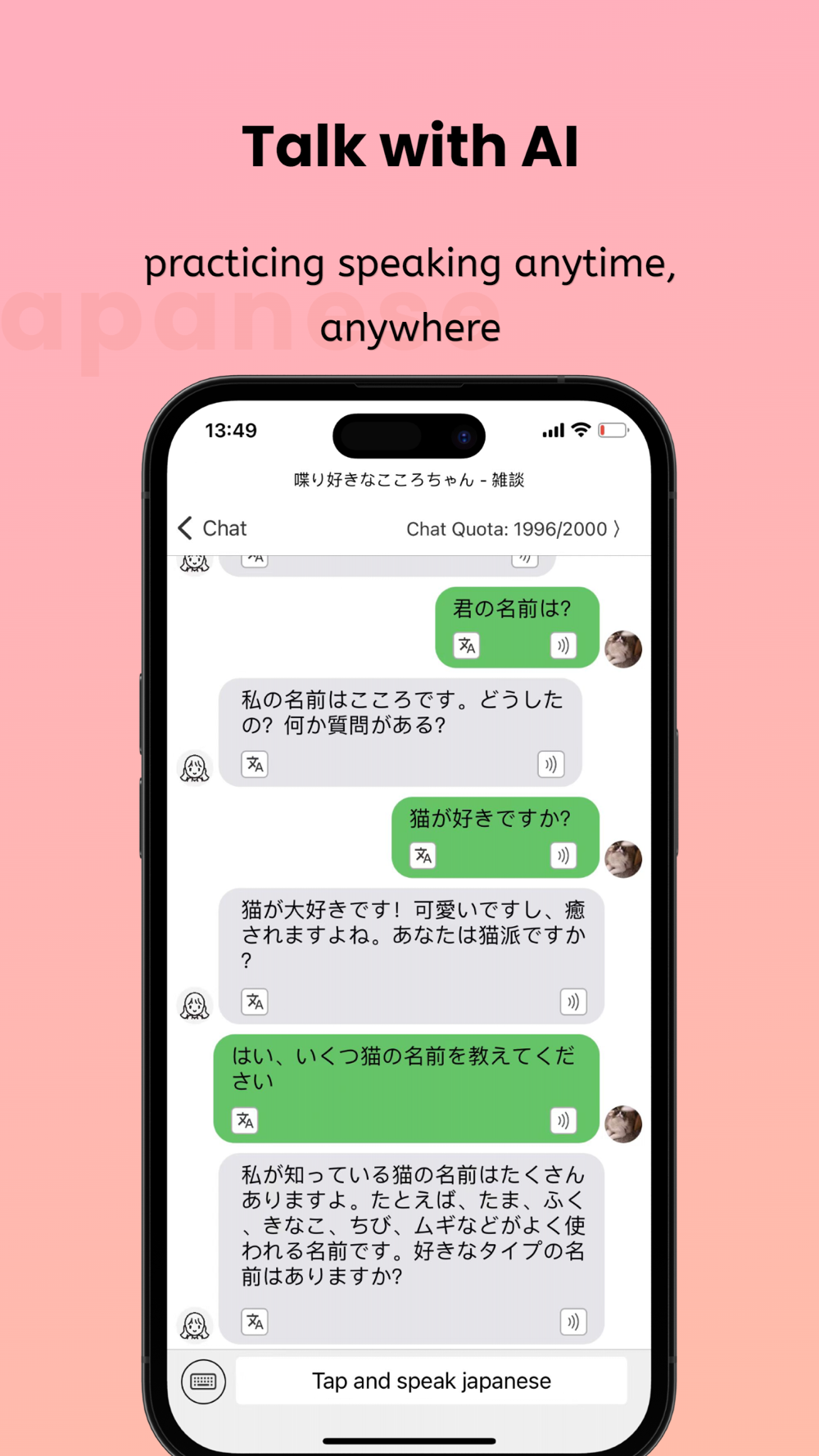 AI Scenario Conversations: Provides practical topics for various situations such as job interviews, school admissions, and medical appointments, allowing you to quickly learn everyday conversations.