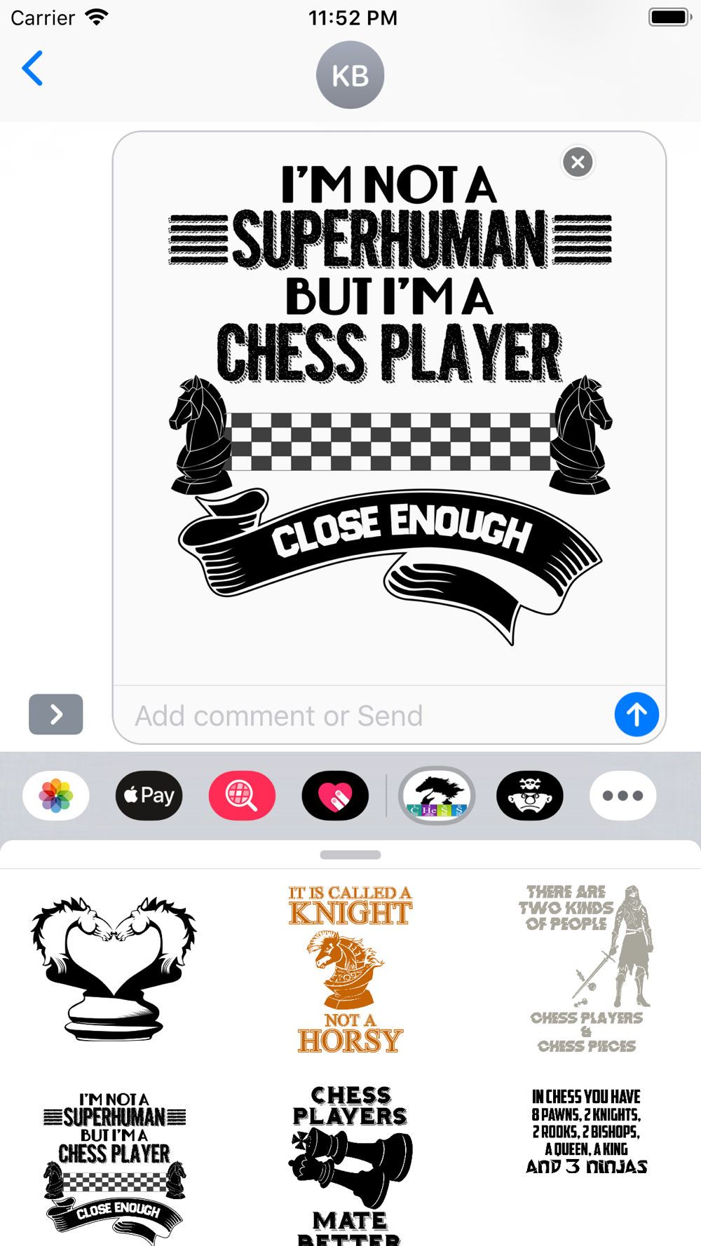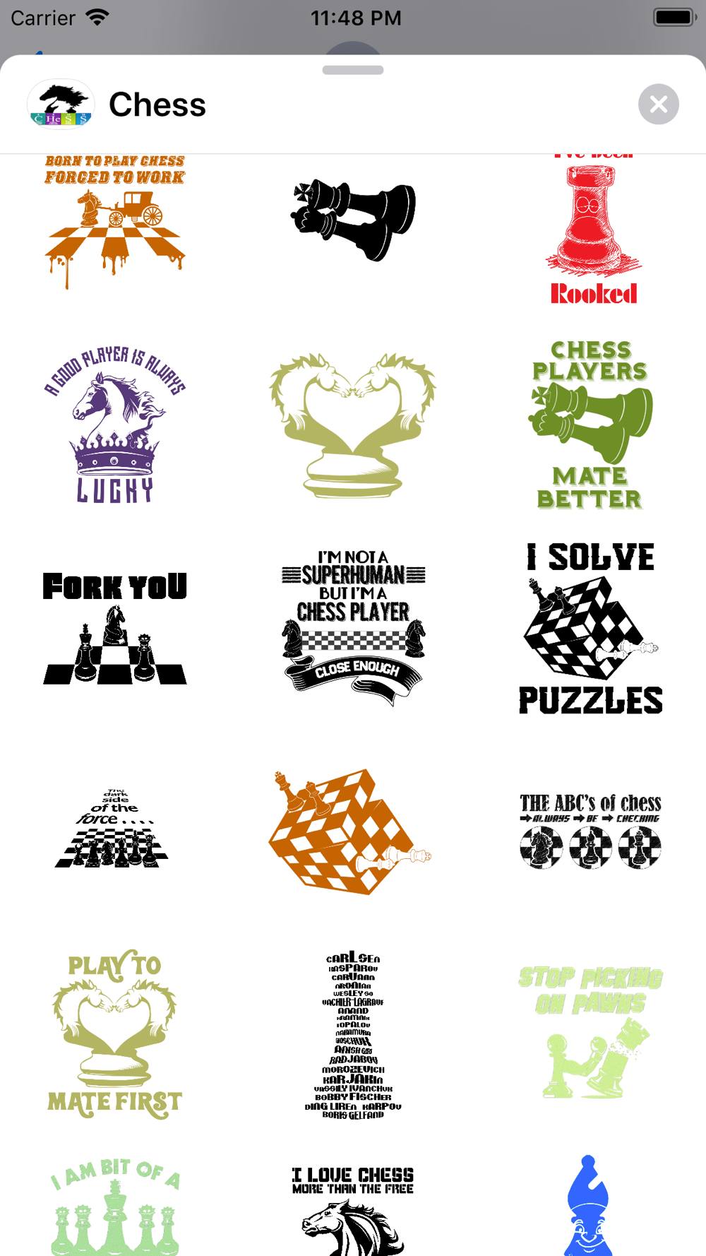 Cool Chess Stickers for every day conversations. 40+ unique designs to show off your chess skills. Stump your family, share with your chess friends. All designs available in apparel and other products (https://chess.boutique)