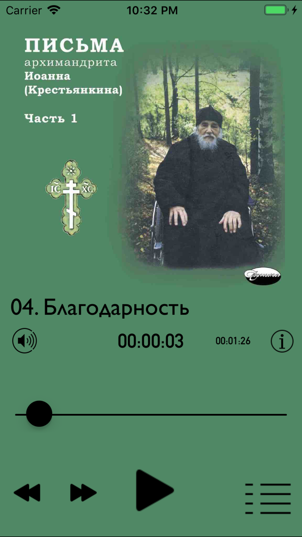 Данная аудиокнига представляет собою первый выпуск собрания писем архимандрита Иоанна (Крестьянкина), прочитанных по изданию: "Письма архимандрита Иоанна (Крестьянкина).- Издание Свято-Успенского Псково-Печерского монастыря, 2006".