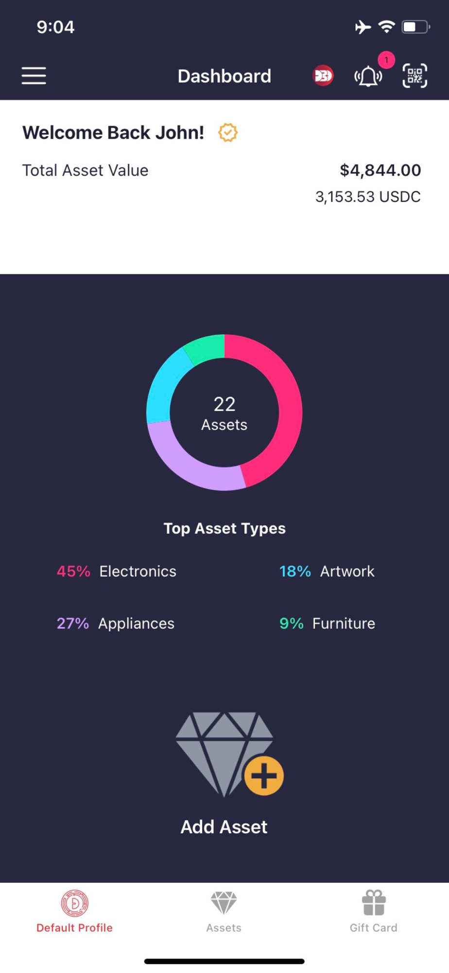 Track the value of your assets over time through the asset registry app