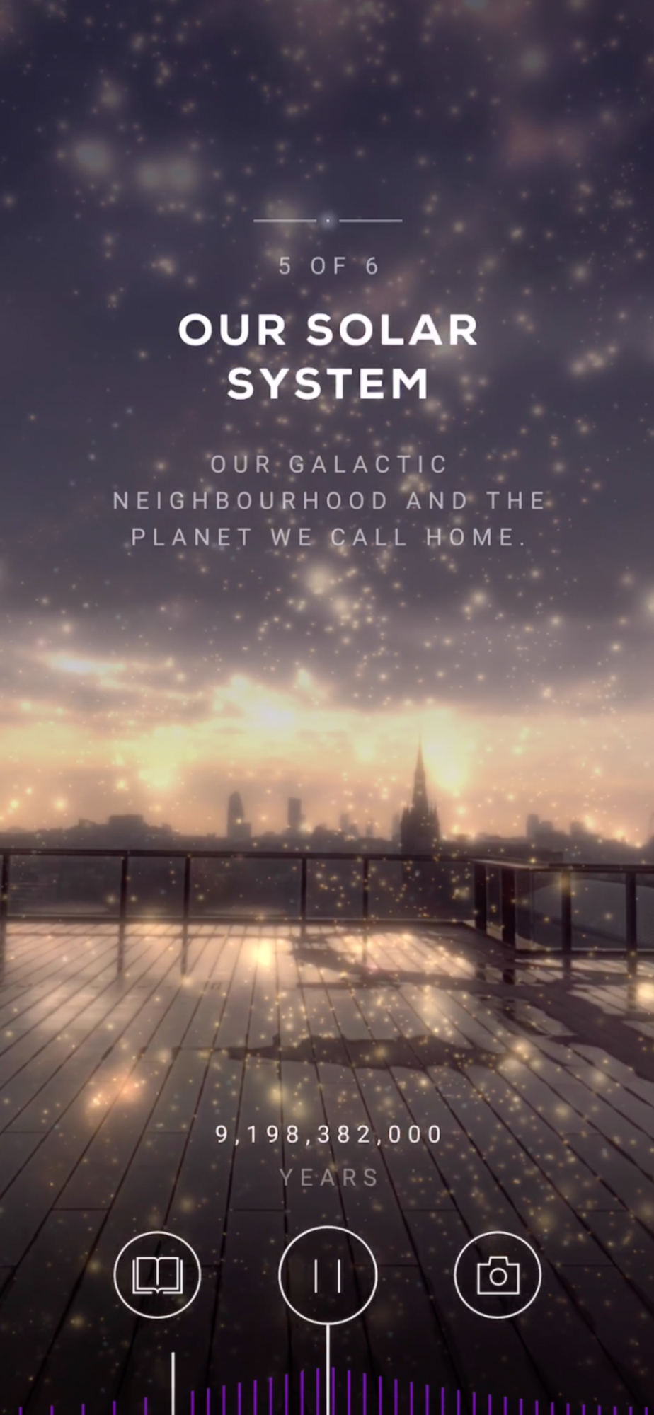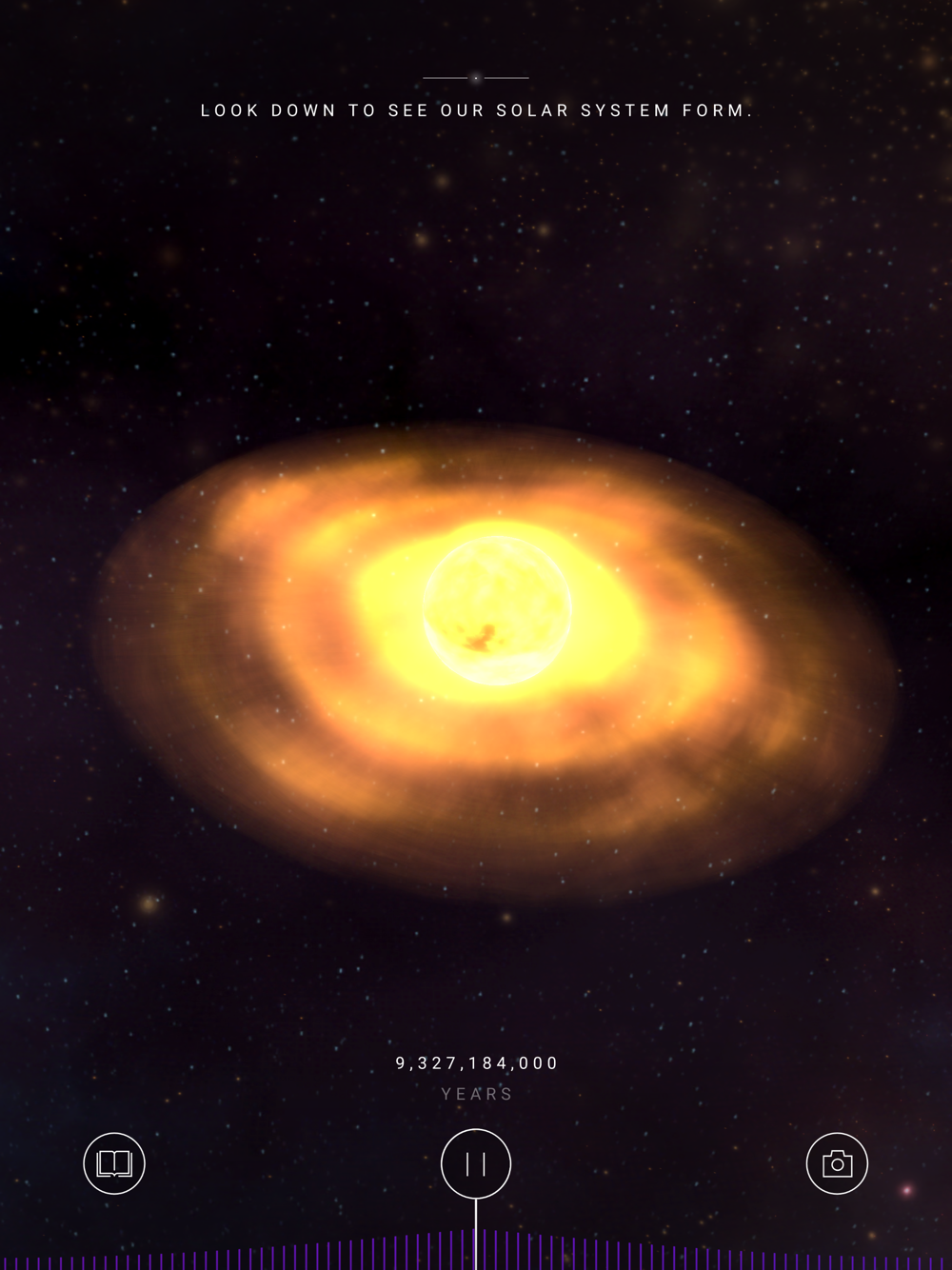 See the universe form in the palm of your hand. Witness the formation of the very first stars, our solar system, and the planet we call home. Immerse yourself in the primordial mystery of the early universe in space and watch events unfold around you, in your own physical environment.