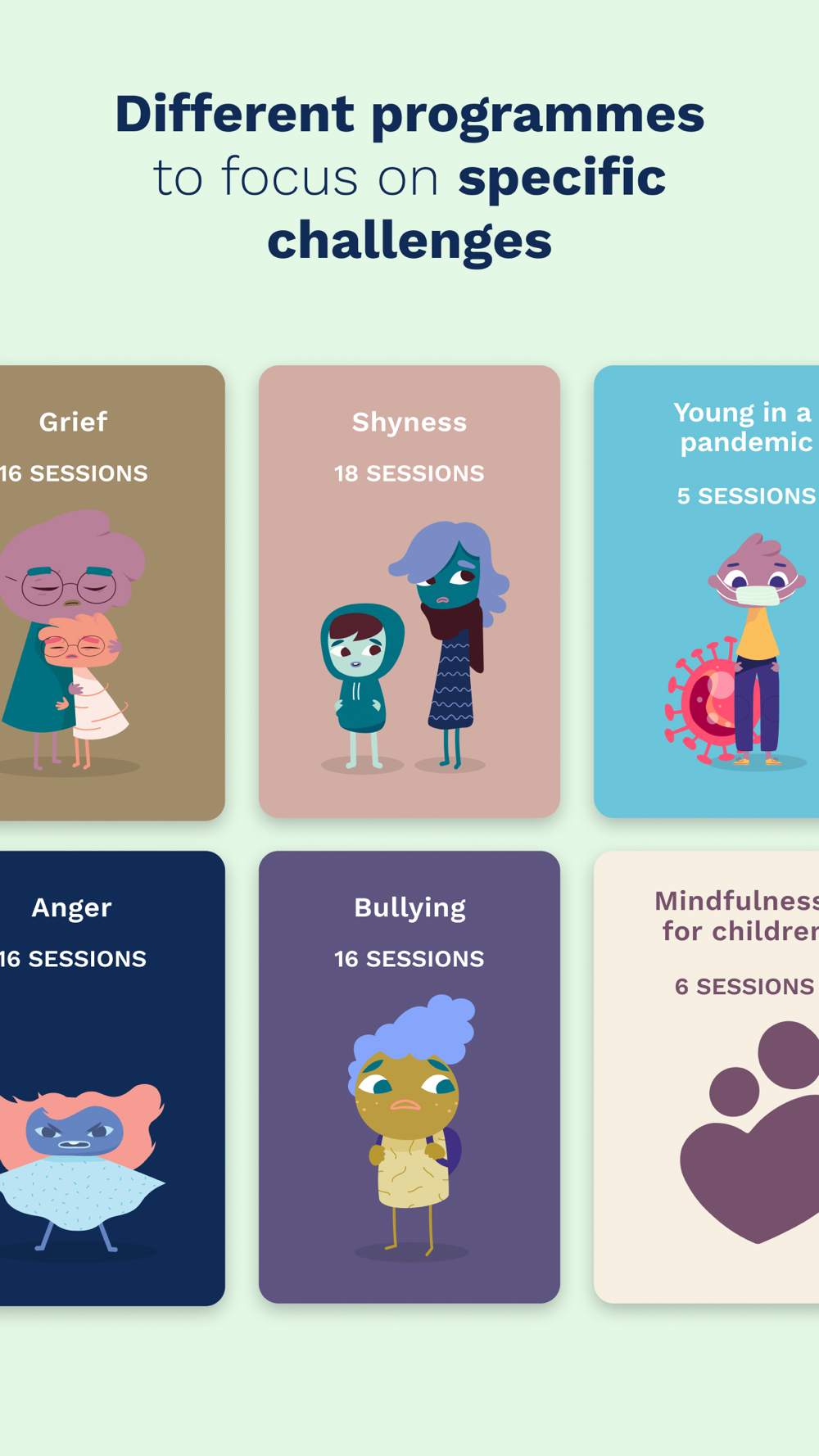 CBT THERAPY PROGRAMMES: The programmes consist of short listening exercises for you and your child. They’re based on child-focused cognitive behavioural therapy and focus on different subjects such as anger, shyness, bullying and grief - with more soon to come.