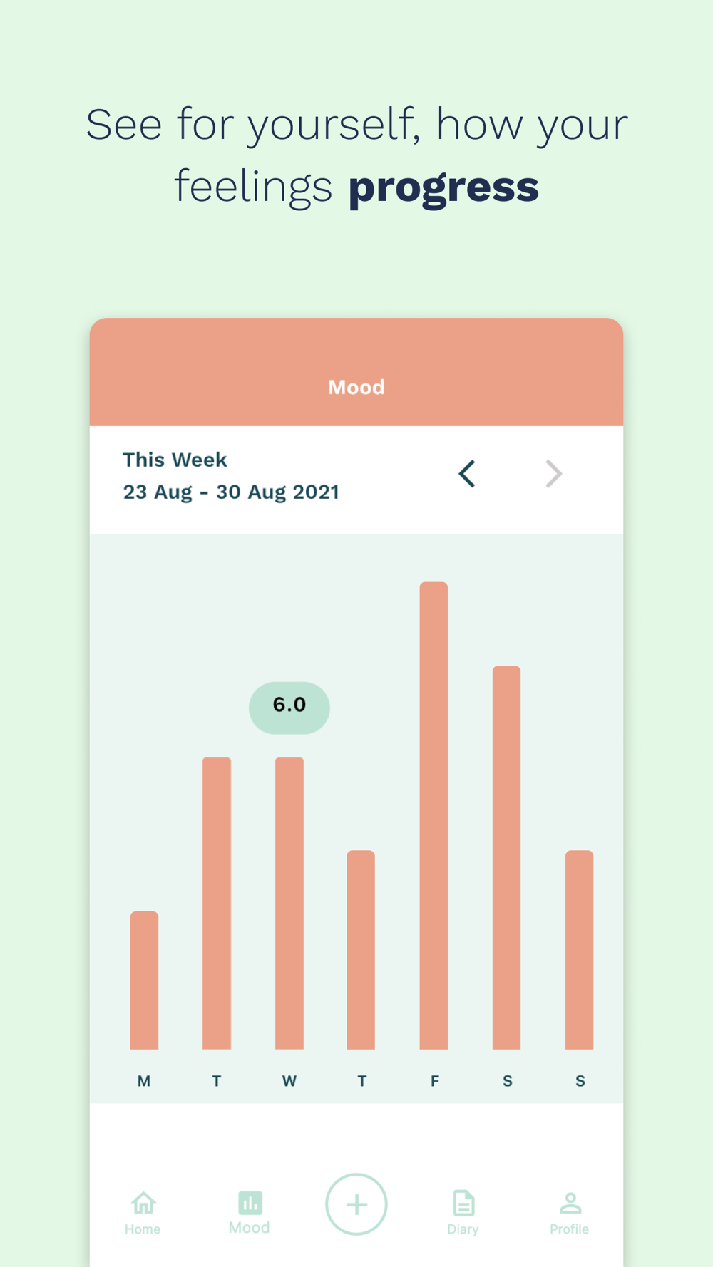 MOODTRACKER: With mood check-ins you can keep a detailed track of your personal growth with an overview of your weekly mood fluctuations as well as your top feelings and activities.