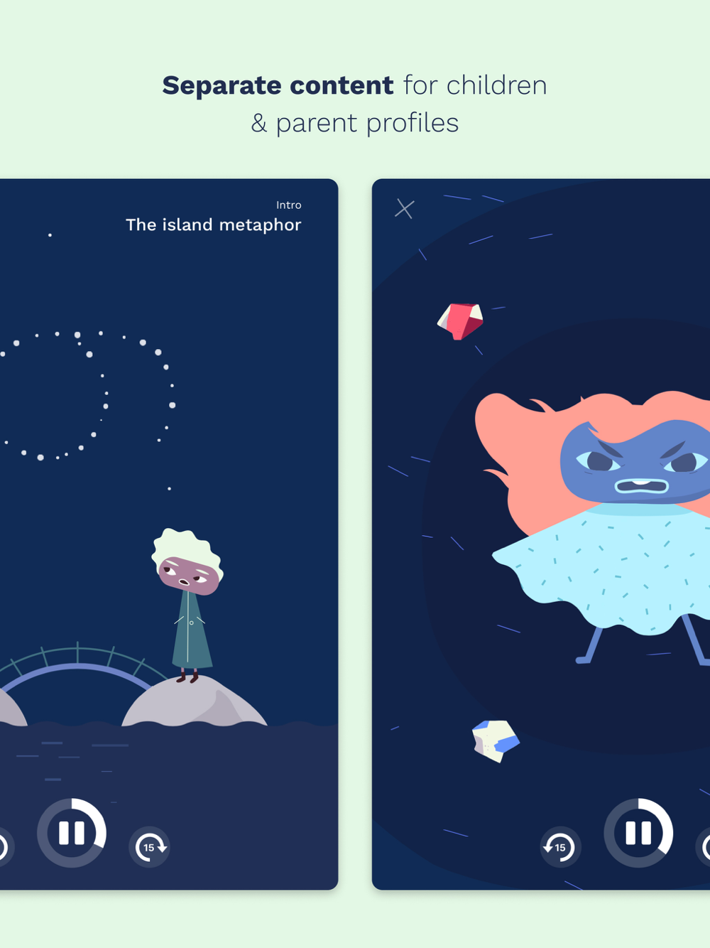 Parent and children profiles, therefore, have separate app content that is specifically tailored to them and their level of understanding. In this way, you and your child will be guided through parallel sessions with each other, and this will allow you to work together to help your child thrive again.