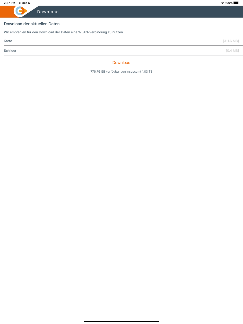 - "Externer Speicher" - Zum Zwischenspeichern der Offline-Karte und der Bilder von Schildern und Aufstellvorrichtungen